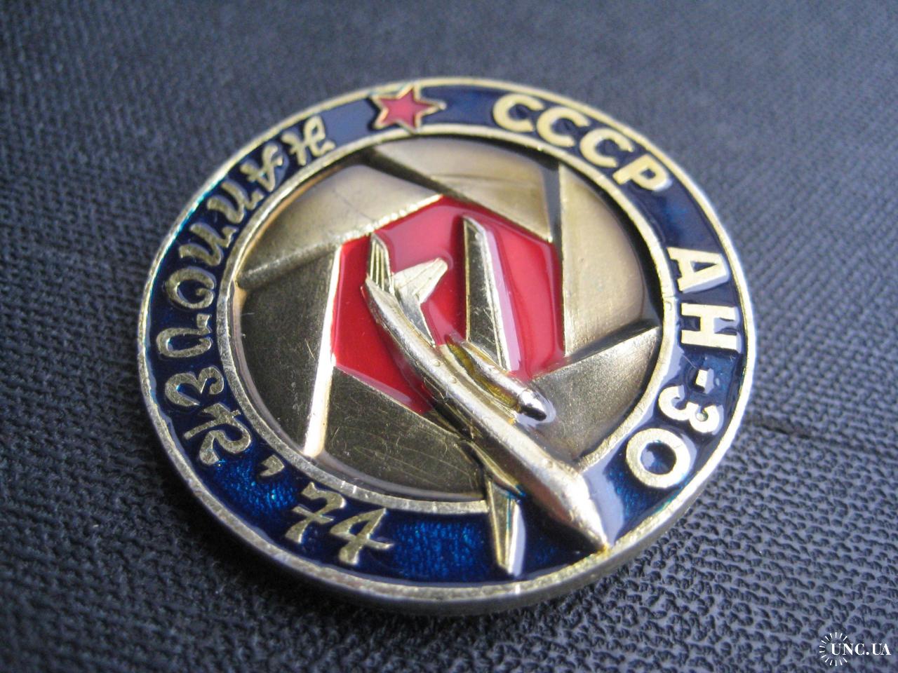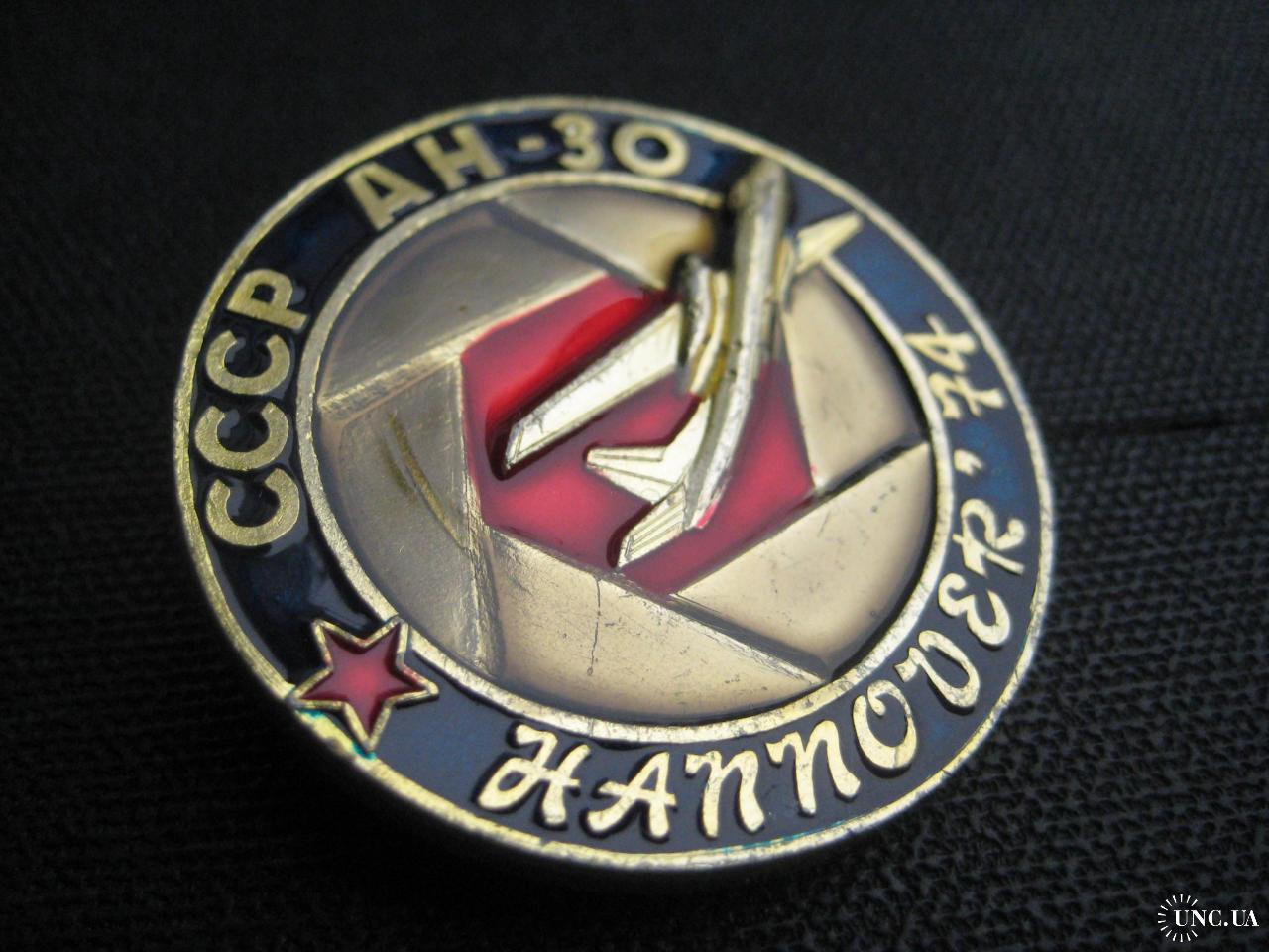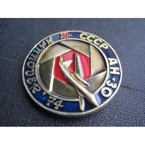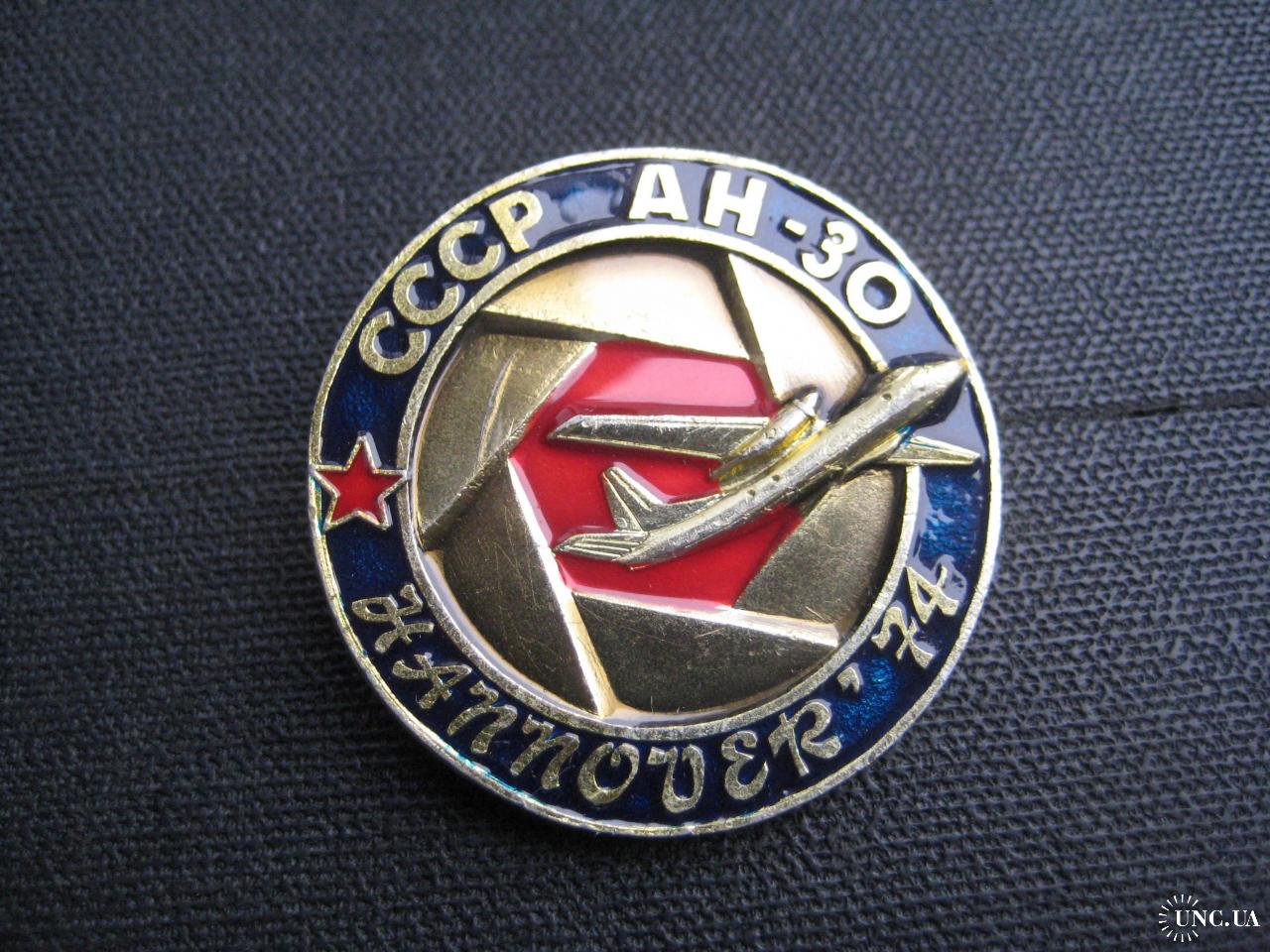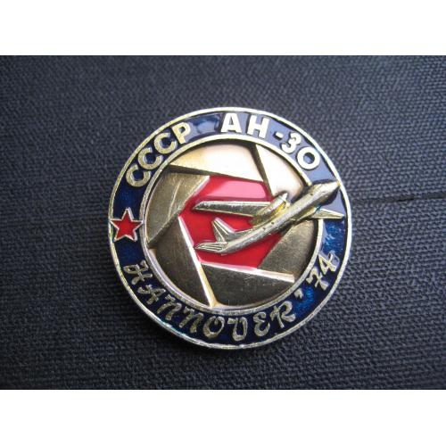 №4512. Оригінальний значок (легк.мет.), літак Ан-30 СРСР Ганновер Німеччина 1974. Діаметр-40мм. Пересилка - Нова пошта, Укрпошта. Для киян можливість зустрічі та перегляду (неділя метро Нивки). В РФ и Белоруссию не отправляю!