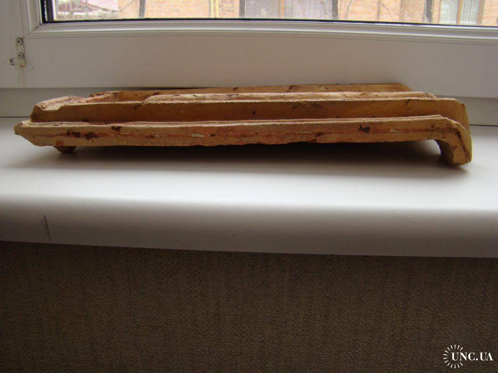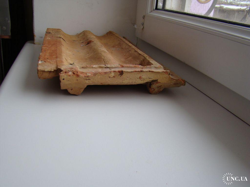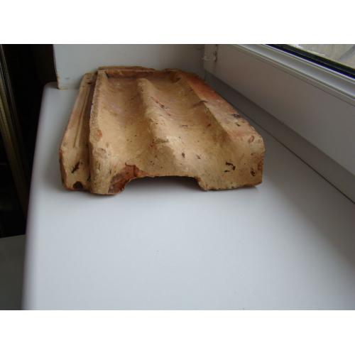 Черепица в хорошем состоянии. Материал - специальная глина. Произведена на Лозоватском заводе, который находился в с.Лозоватка Криворожского района предположительно в конце 19 начале 20 столетия. В наличии есть еще одна такая же черепица. В остальном все как на фото.