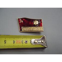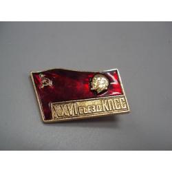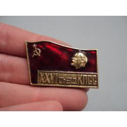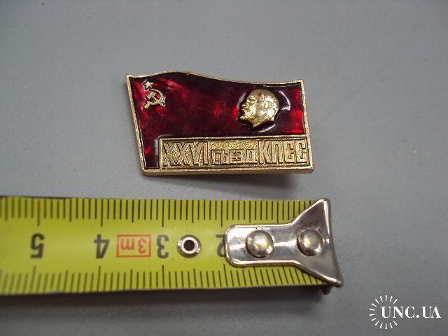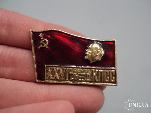 Знак 26 съезд КПСС ссср флаг XXVI съезд Ленин портрет профиль на флаге герб серп и молот №17426
