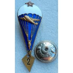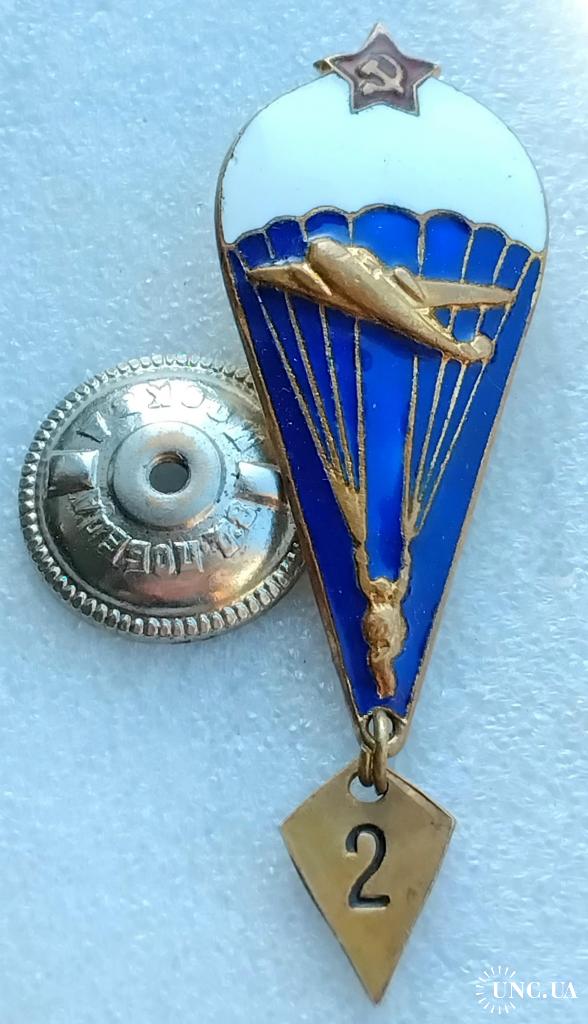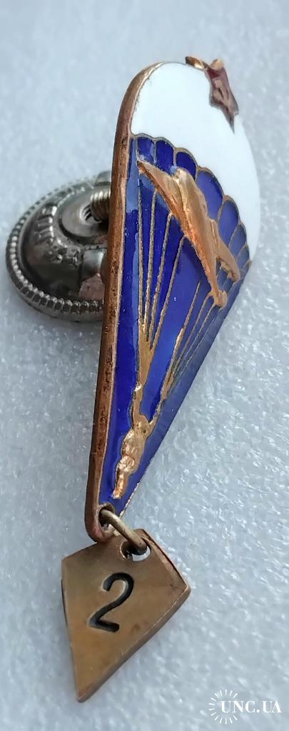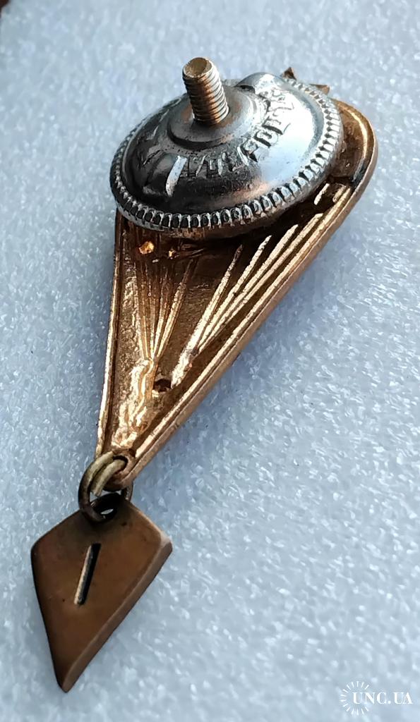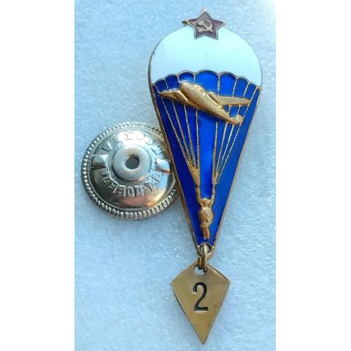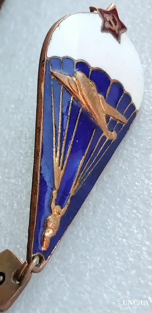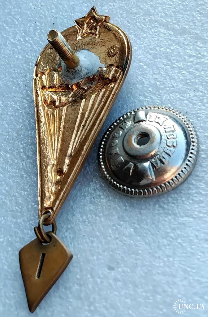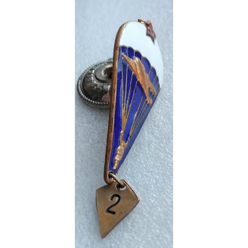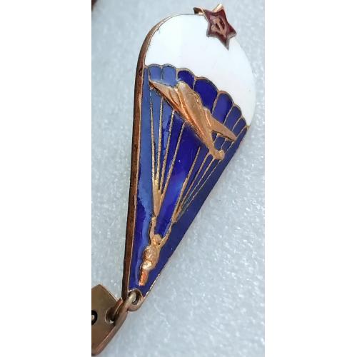 1961-1980☝️Нагрудный знак 'Парашутист' диапазона 1975г. (тяжмет) эмали родные без замен и реставраций, гайка родная з-д 'Победа на резьбе сидит плотно.