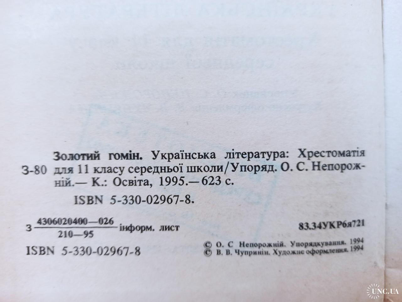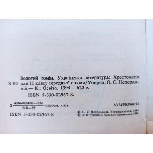Золотий гомін [Текст] : Українська література : Хрестоматія для 11 класу середньої школи / упорядник О. С. Непорожній ; художнє оформлення В. В. Чуприніна