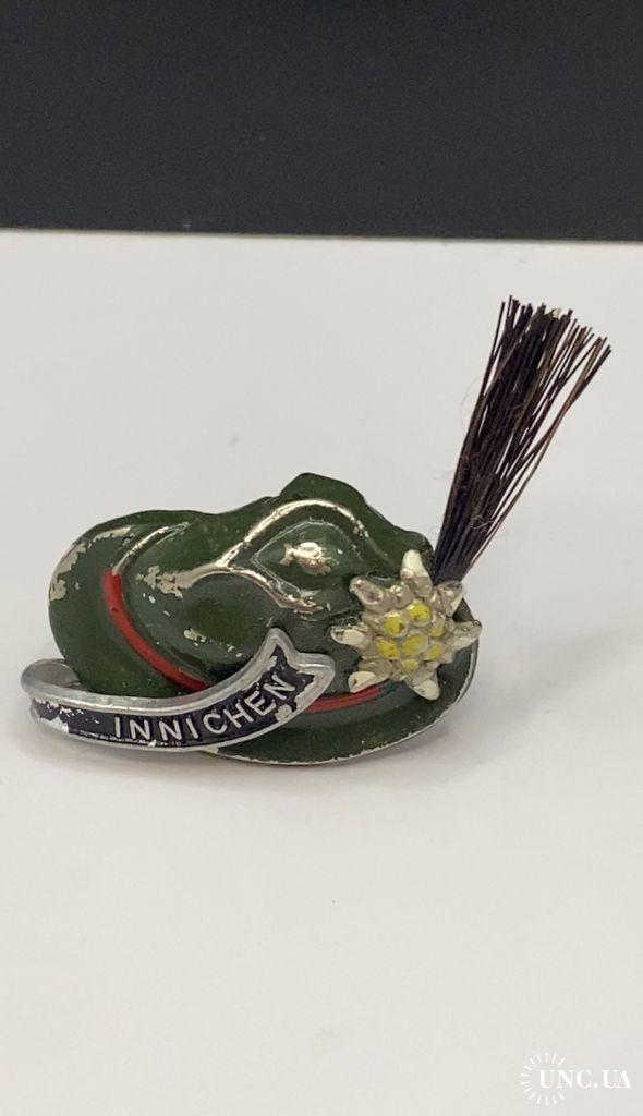 6lt118 Знак, брошь Шляпа. Туризм, альпинизм, эдельвейс. Европа. Ширина 3 см. Незначительная потеря к