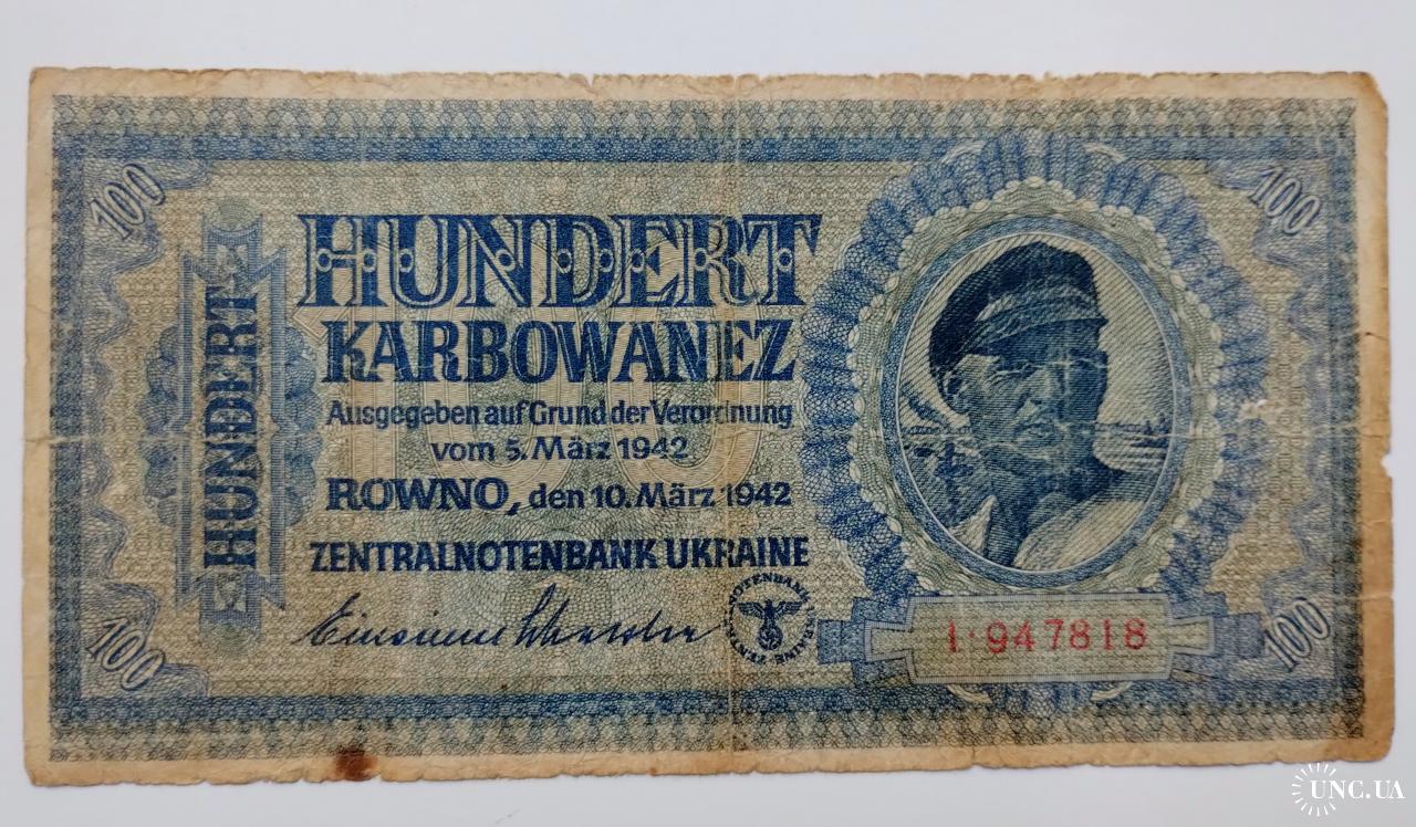 100 карбованців 1942 року 100 карбованцев 1942 года РОВНО Серия 29. Германская оккупация. Состояние!