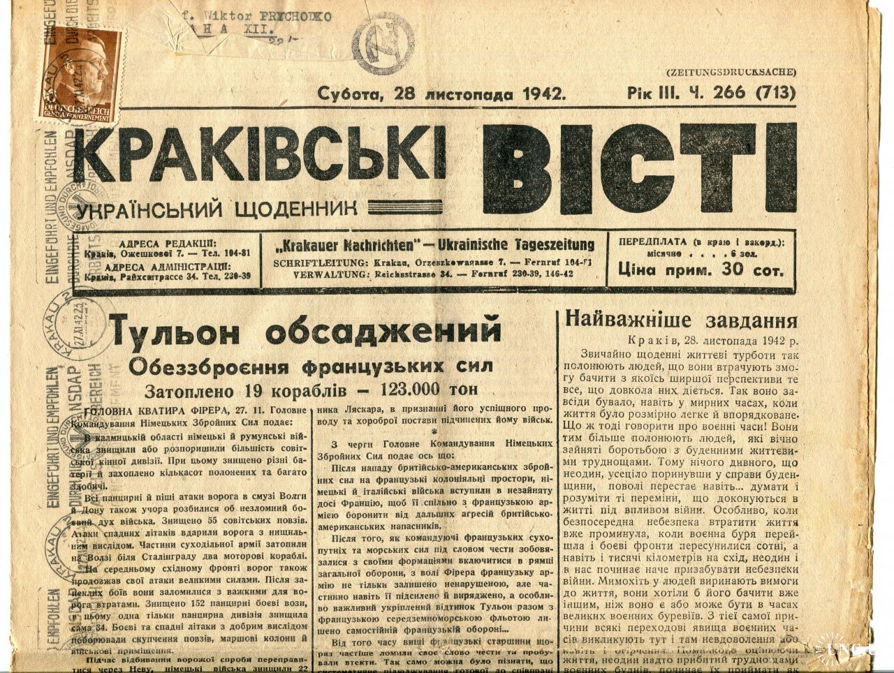 СССР - Газета 1949 год . Тираж 2400 экз. АНТИКВАРИАТ , Раритет , Западная Украина , RRR . Б/У Сталин