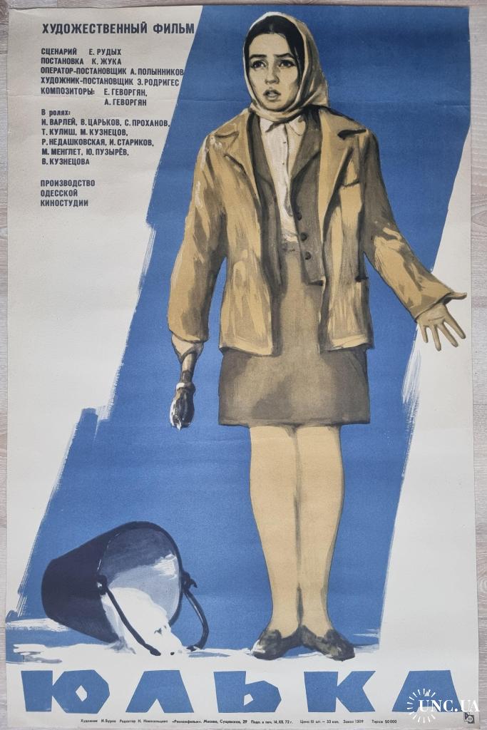 Кино афиша Юлька 1972 режиссёр К. Жук Одесская киностудия Художник И. Буров С. Проханов Недашковская