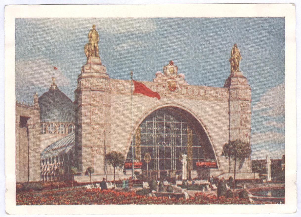 Почтовая карточка ДМПК 12.01.55 ВСХВ Главный павильон Марка 8 стандартный выпуск Полевая почта в1792