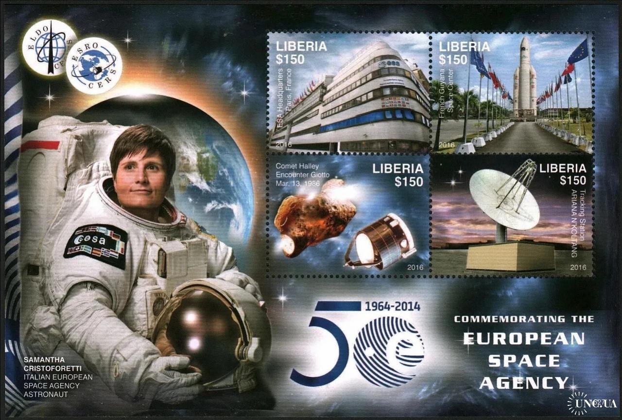 2016 Либерия 7020-7023KL 50 лет Европейскому космическому агентству,астронавт С.Кристофоретти18,00 €