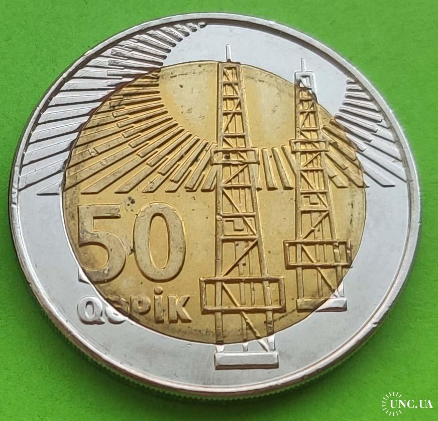 Монета без года - Азербайджан 50 капик 2006 (редкий случай, при дизайне монеты забыли поставить год)