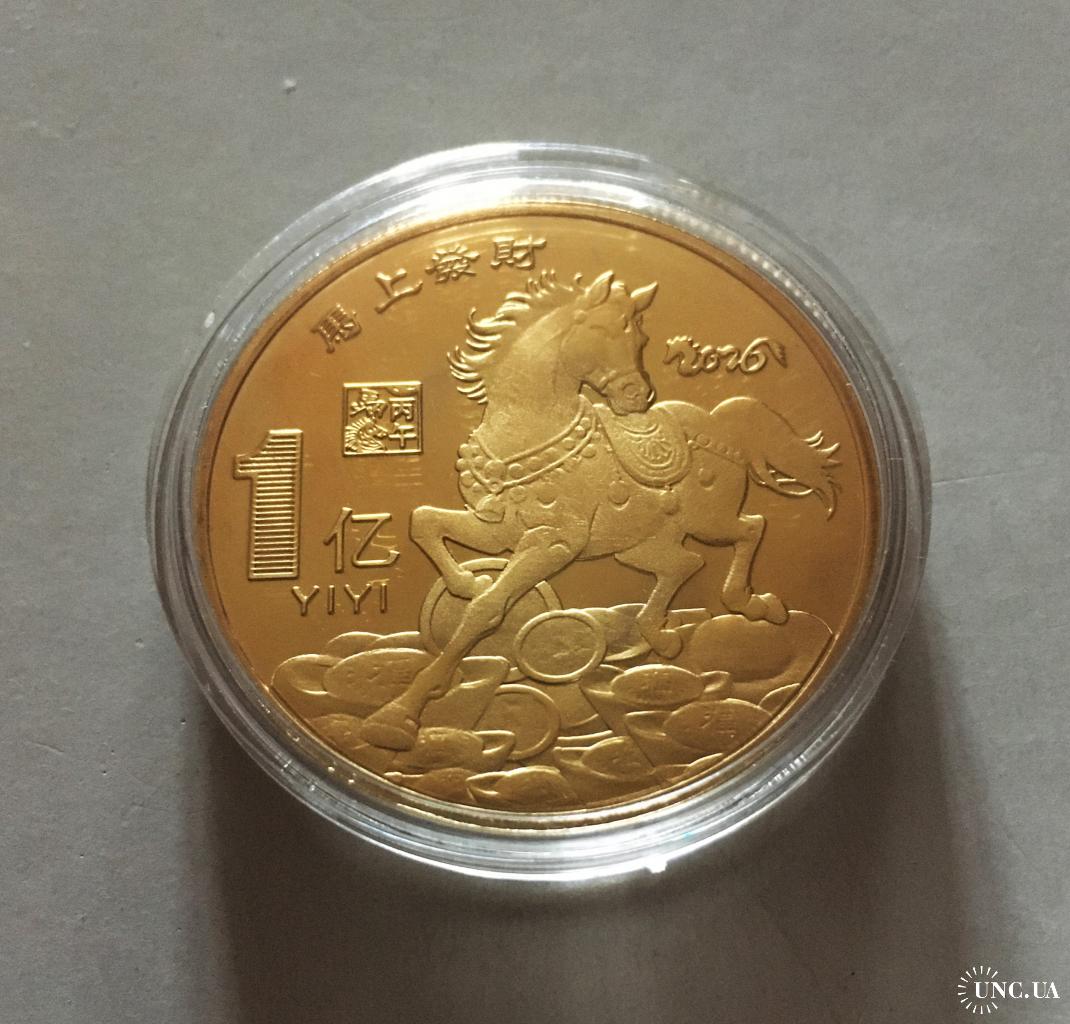 Монета -Золотой конь с китайскими иероглифами, коллекционный подарок в 2026 г на Новый год, Рождеств
