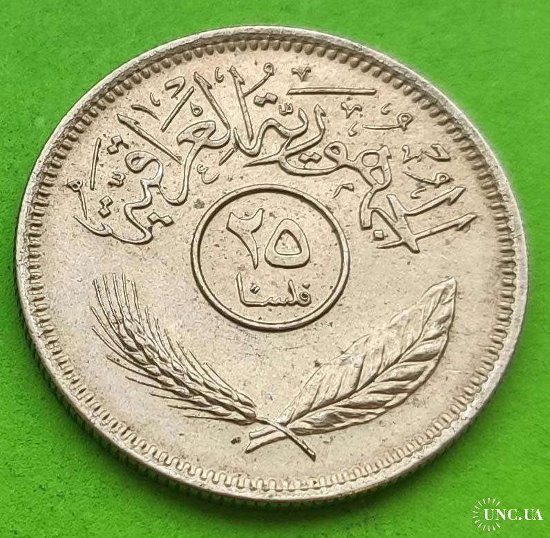 The first Iraqi coins in denominations of 1, 2, 4, 10, 20, 50 and 200 fils were introduced into circulation in 1931-1932. Coins in denominations of 20, 50 and 200 fils were minted from silver. In 1953, 100 fils coins were introduced into circulation, also minted in silver. After the establishment of the Iraqi Republic in 1959, coins came into circulation in denominations of 1, 5, 10, 25, 50 and 100 fils. In 1967, new coins began to be issued in denominations of 5, 10, 25, 50 and 100 fils. Since 1970, nickel coins have also been issued in denominations of 250 fils, and since 1971 - 500 fils. In addition, since 1980, nickel coins in denominations of 1 dinar have been introduced into circulation.