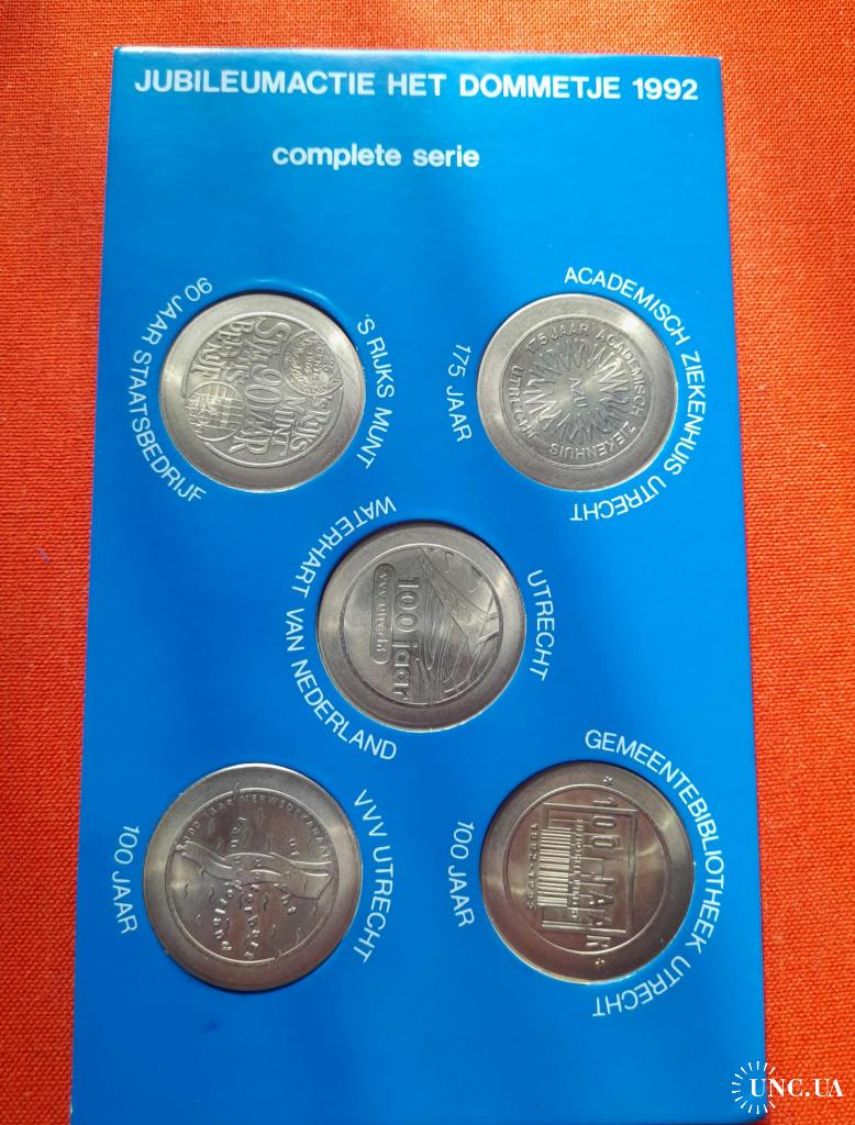 Нидерланды г.Утрехт набор монет Dommetje 1992г. 5шт.,пять различных годовщин г.Утрехта, очень редкий
