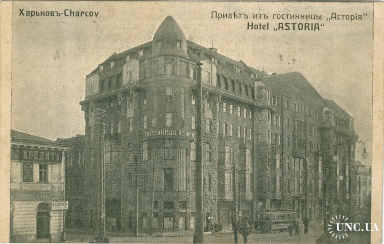 Харьков Привет из Гостиницы Астория Общество Взаимного Кредита Банк Трамвай Почта Село Крынки 1916 г