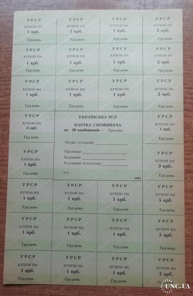 Картка споживача, купони 50 карбованців  ГРУДЕНЬ  ДДВЗ (Днепр область)