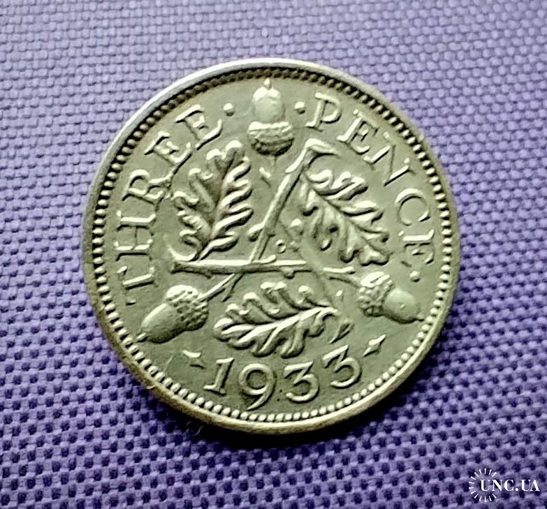 Оригінал3 пенса 1933 року. Стан монети по світлинах.
