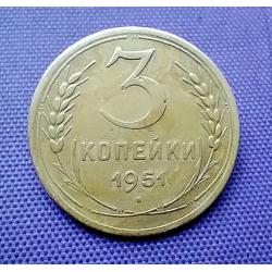Оригінал3 копійки 1951 року, стан монети по світлинах