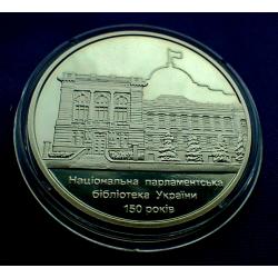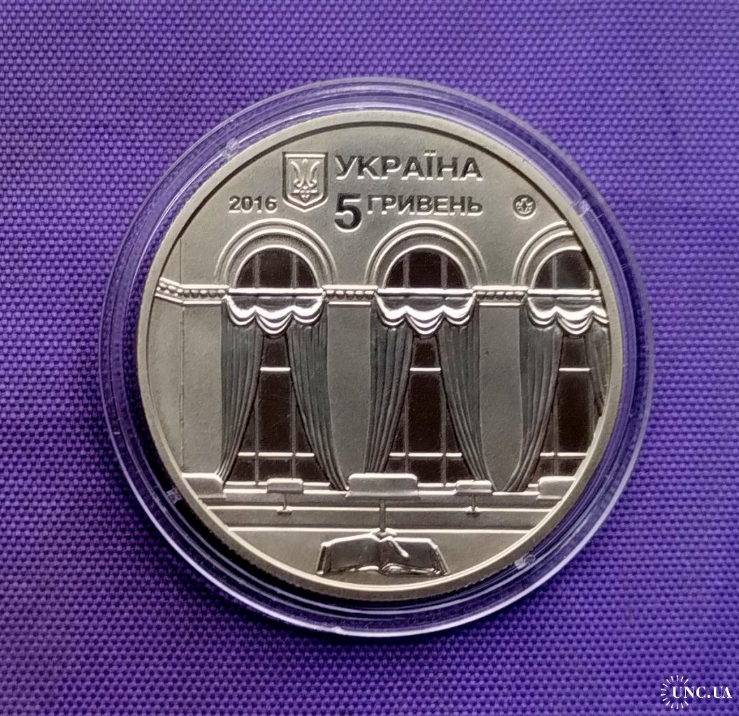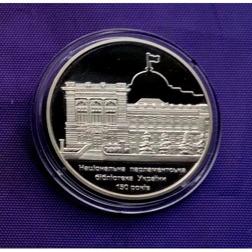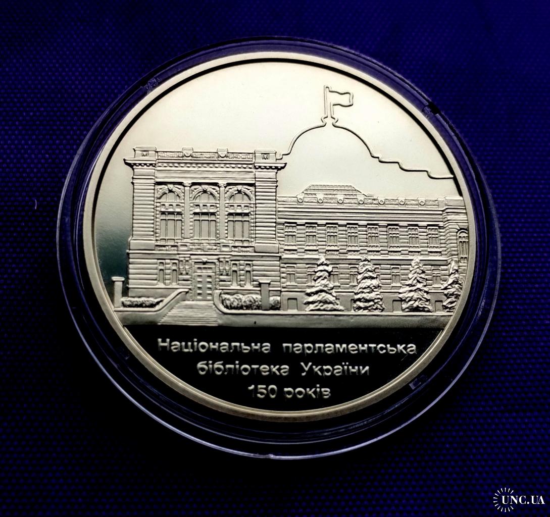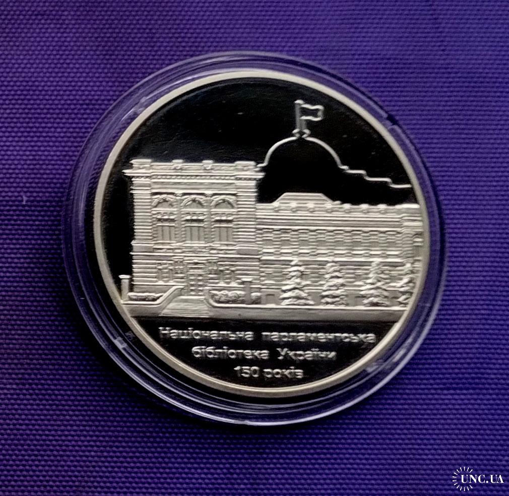 Оригінал5 гривень 2016 року, 150 років національній парламентський бібліотеці, стан монети по світлинах.