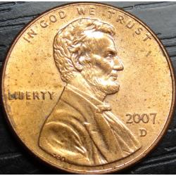 One cent USA 2007 D (Denver mint) / 1 цент 2007 D США (монетний двір Денвер)