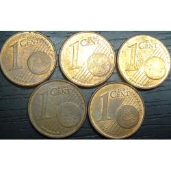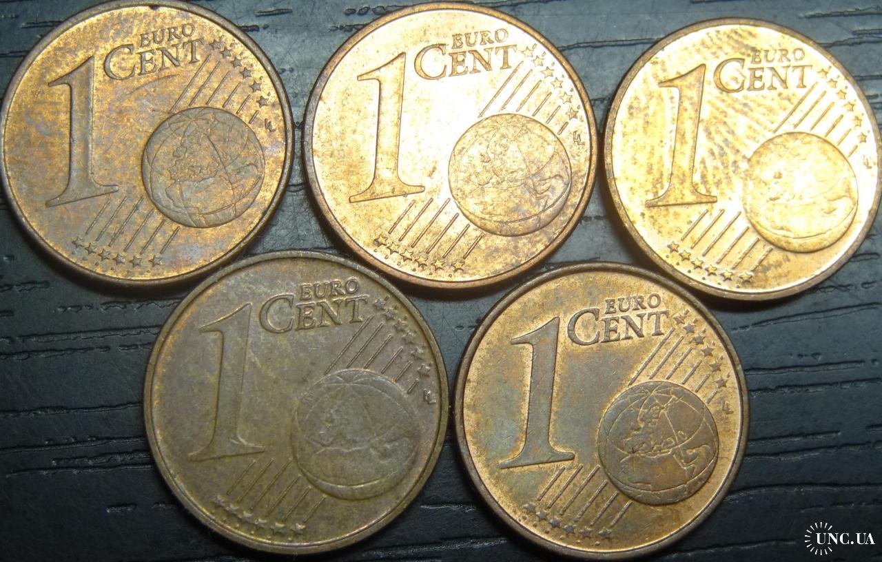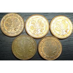 1 eurocent Germany 2018 (all different mint marks) 5 pieces / 1 євроцент 2018 Німеччина (всі монетні двори), 5шт, всі різні