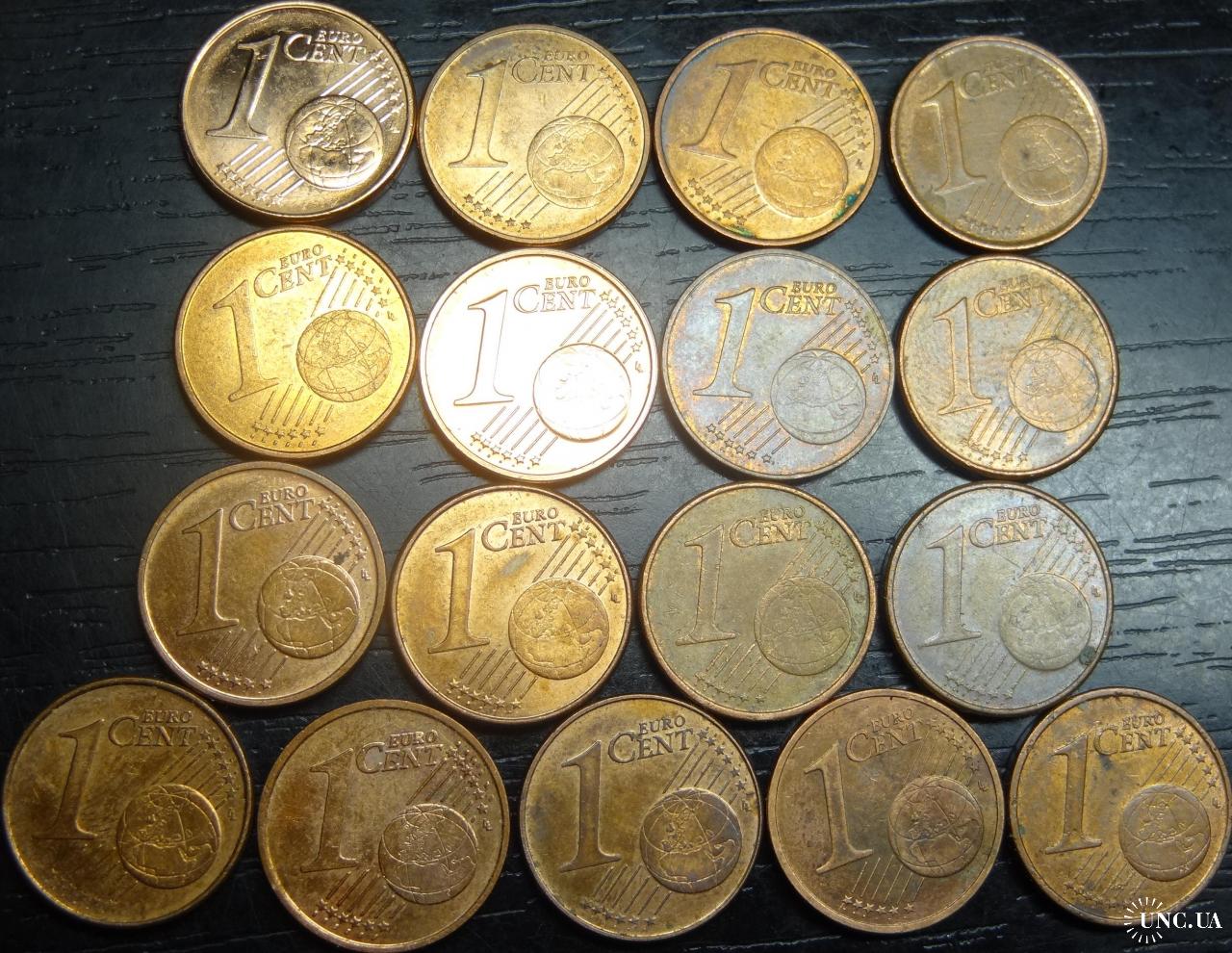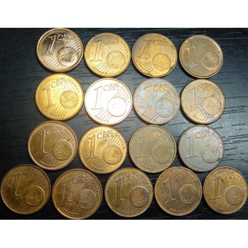 Set of 1 eurocent (different countries), 17 pieces / Комплект 1 євроцент різних країн Євросоюзу, 17шт, всі різні