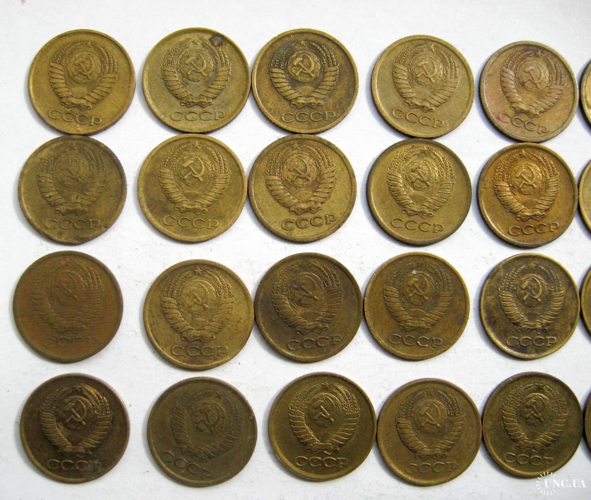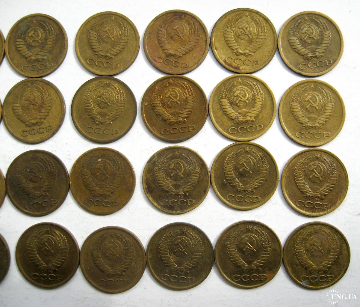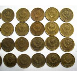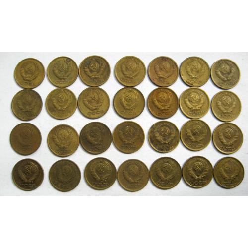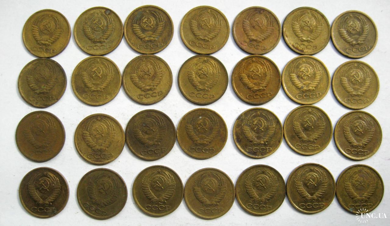 27 монет СРСР 1 коп.: 1961, 1962, 1963, 1965, 1967, 1968, 1969, 1970, 1971, 1972, 1973, 1974, 1975, 1976, 1977, 1978, 1979, 1980, 1981, 1982, 1983, 1984, 1985, 1986, 1987, 1988, 1989, 1990