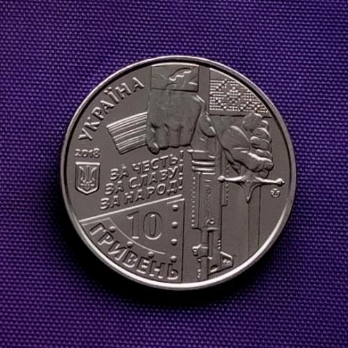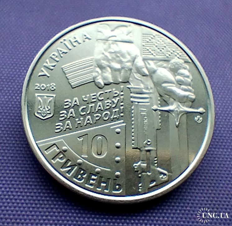 Оригінал10 гривень 2018 року, захисникам Донецького аеропорту, стан монети по світлинах.