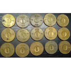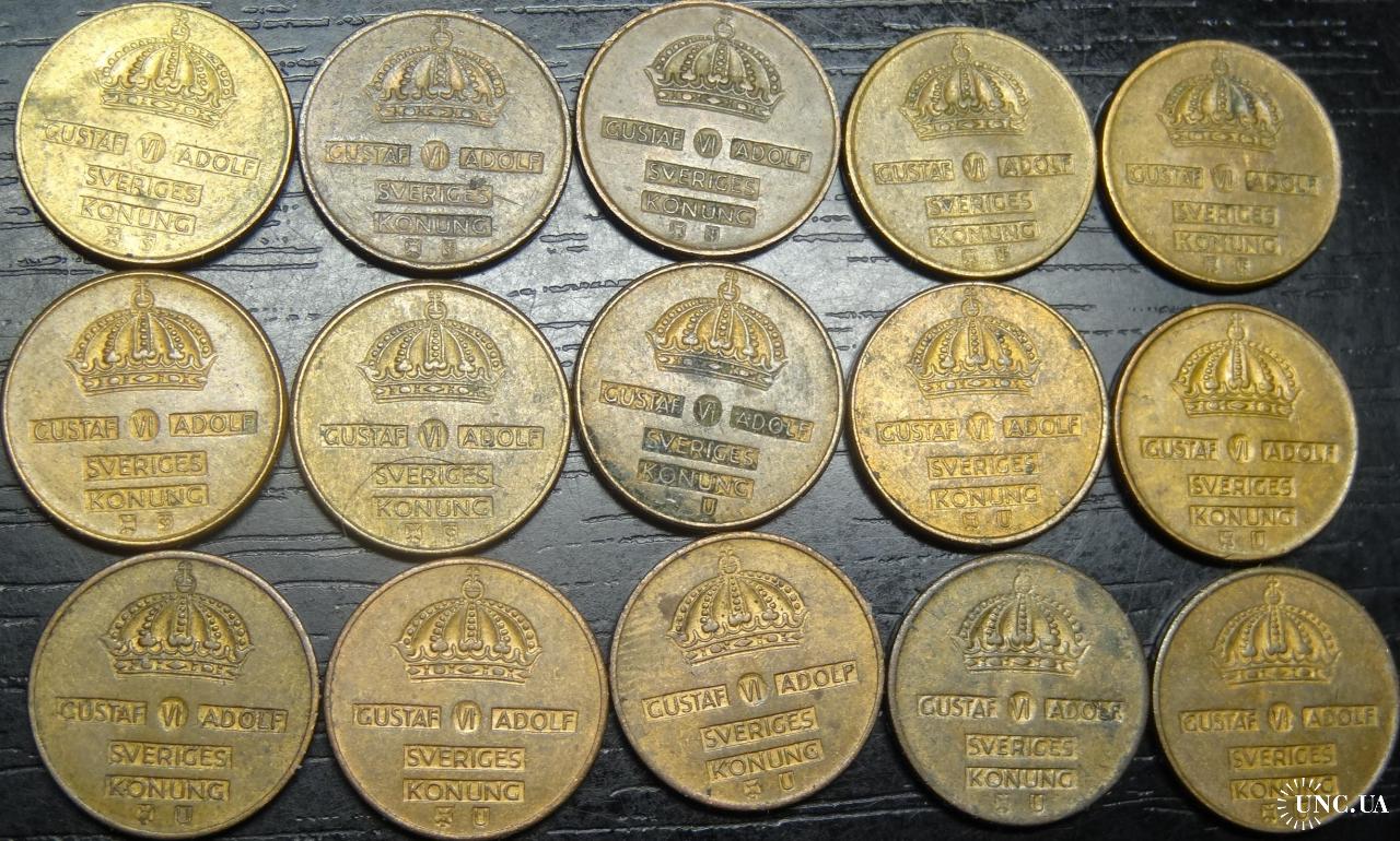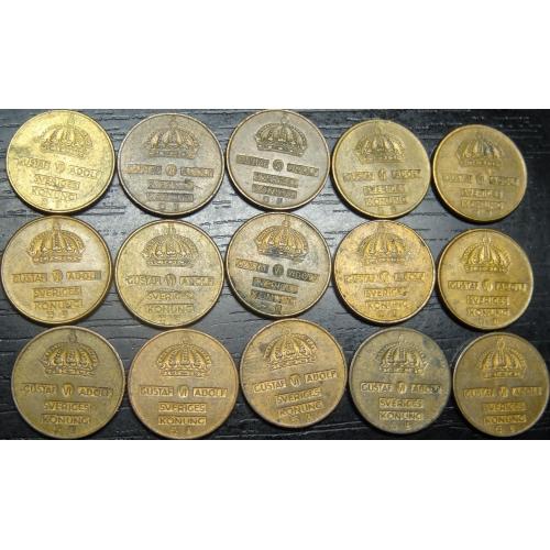 set of 1 ore Sweden (all different by date) 15 pieces / порічниця 1 оре Швеція, 15шт, всі різні