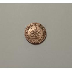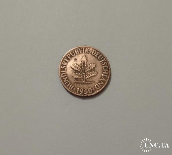 ОригіналОбігова монета із сталі з мідним покриттям 1 пфеніг 1950 року. Стан по фото