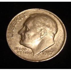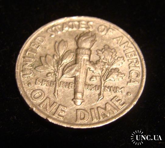 На изображении представлена монета США номиналом 10 центов («дайм») 1987 года выпуска.