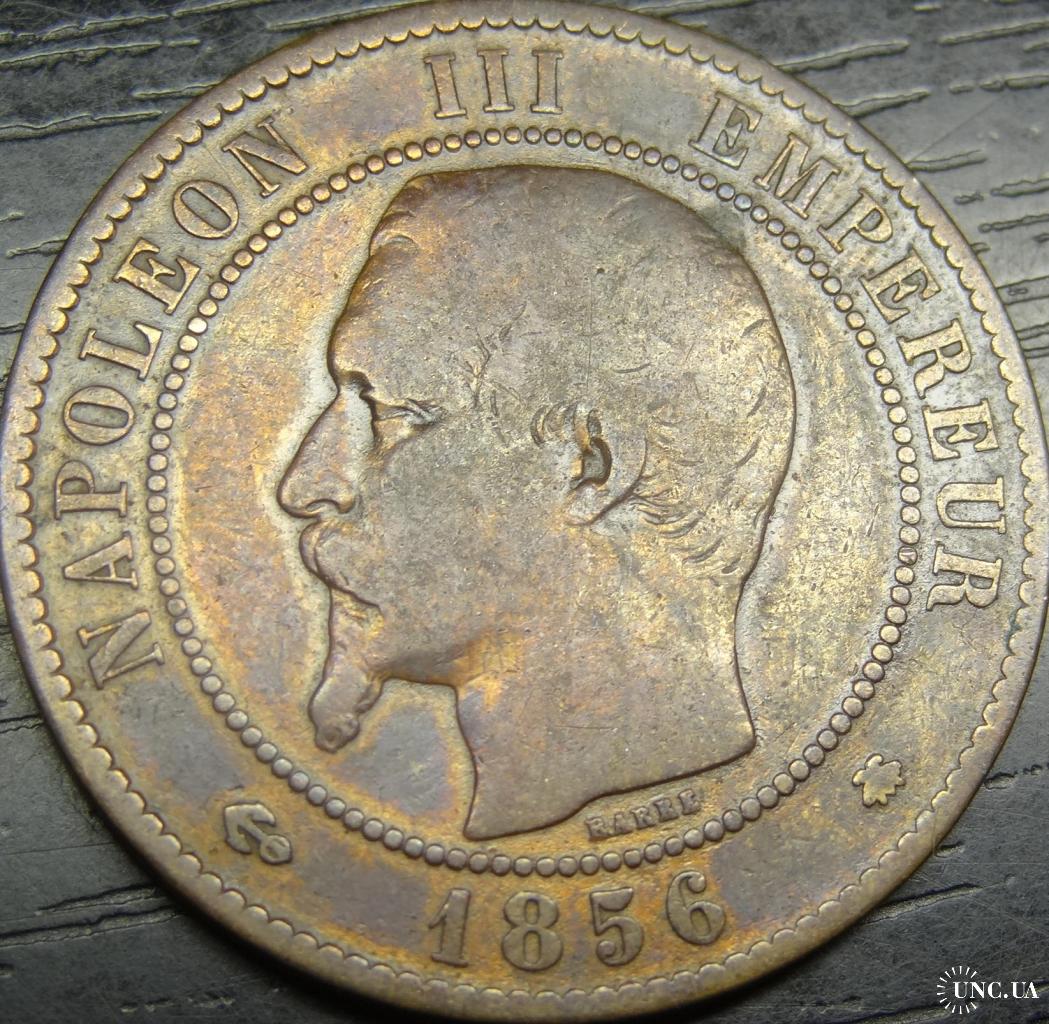 10 centimes France 1856 BB (Strasbourg mint) / 10 сантимів Франція 1856 BB (монетний двір Страсбург)