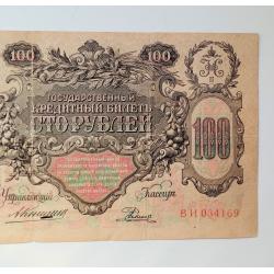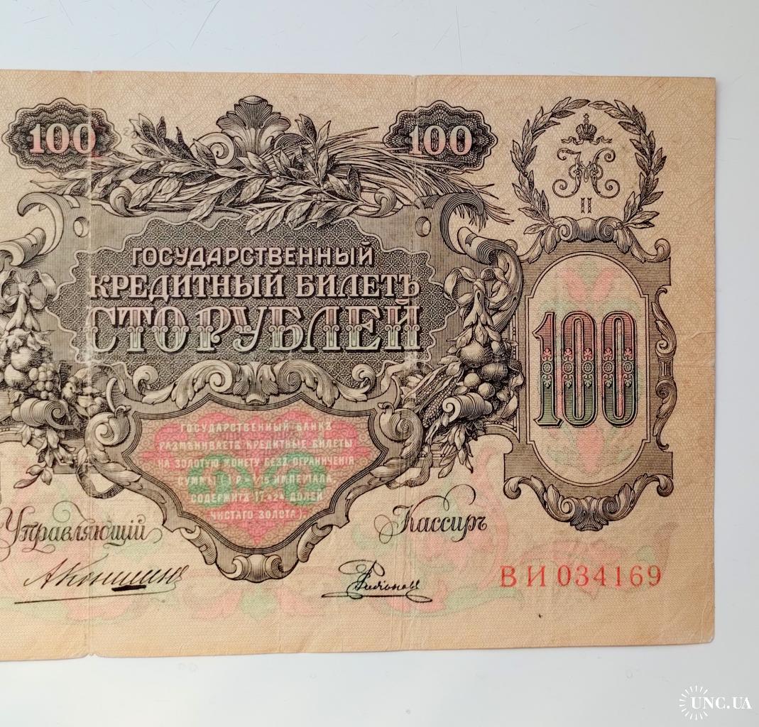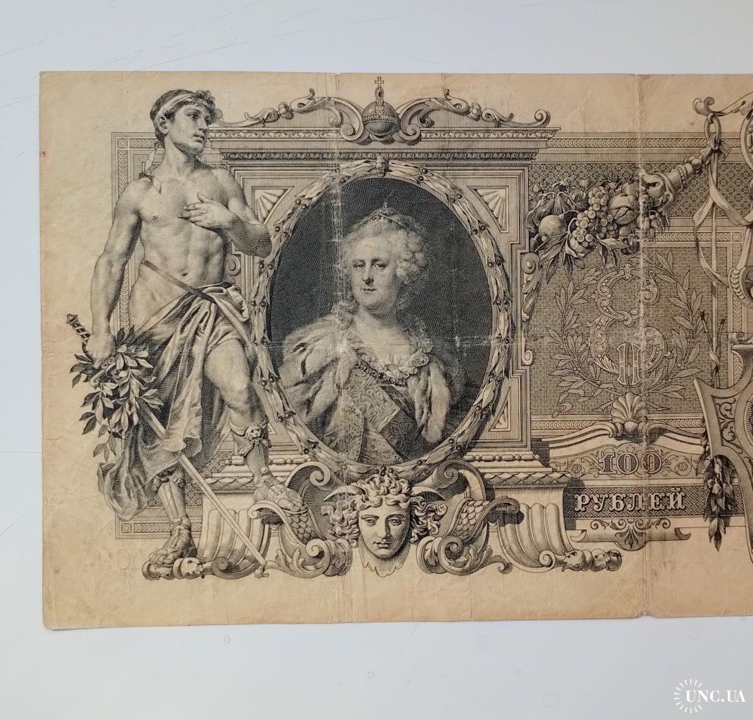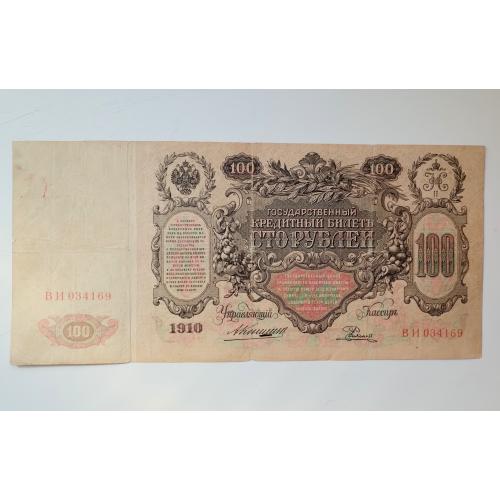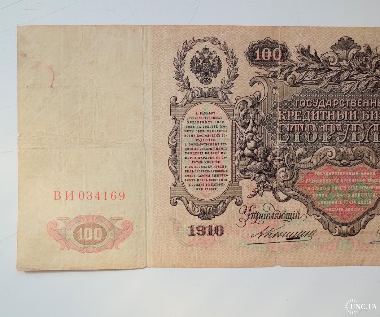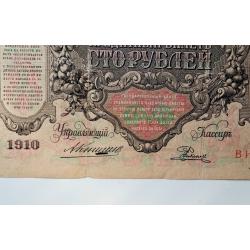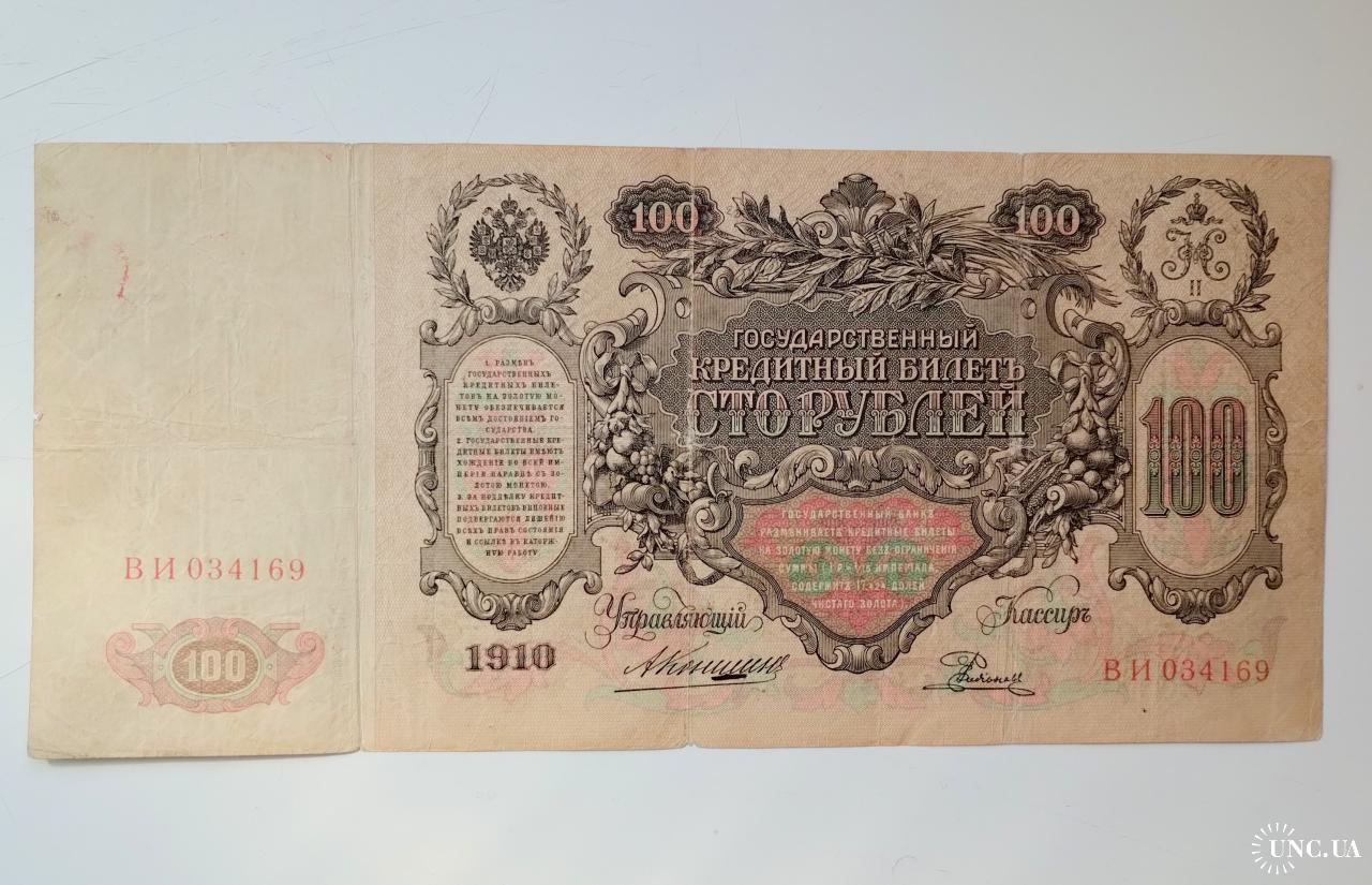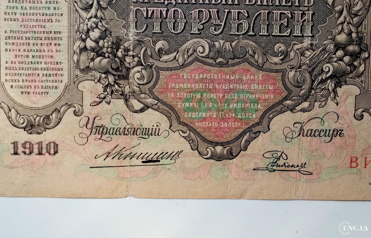 наявний100 рублів 1910 року, управляючий Коншин, касир Родіонов, стан банкноти по світлинах.