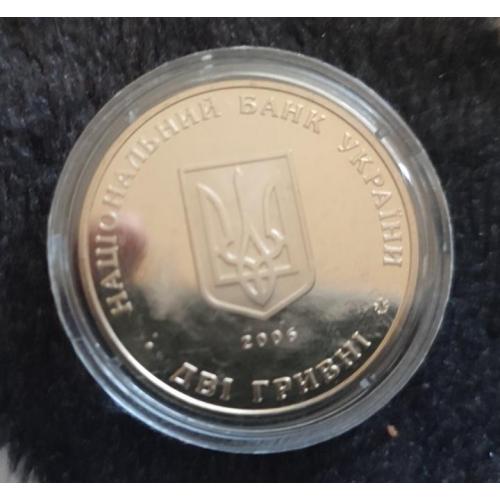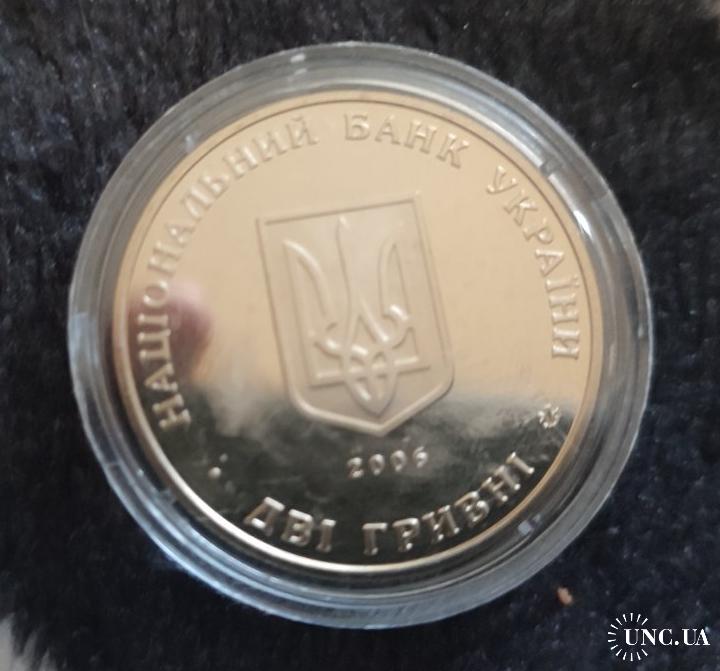 ОригіналОписание оформления Аверс: В центре изображен малый Государственный Герб Украины, под ним — год чеканки (2006). По кругу размещены надписи «НАЦІОНАЛЬНИЙ БАНК УКРАЇНИ» и «ДВІ ГРИВНІ», а также логотип Монетного двора НБУ.