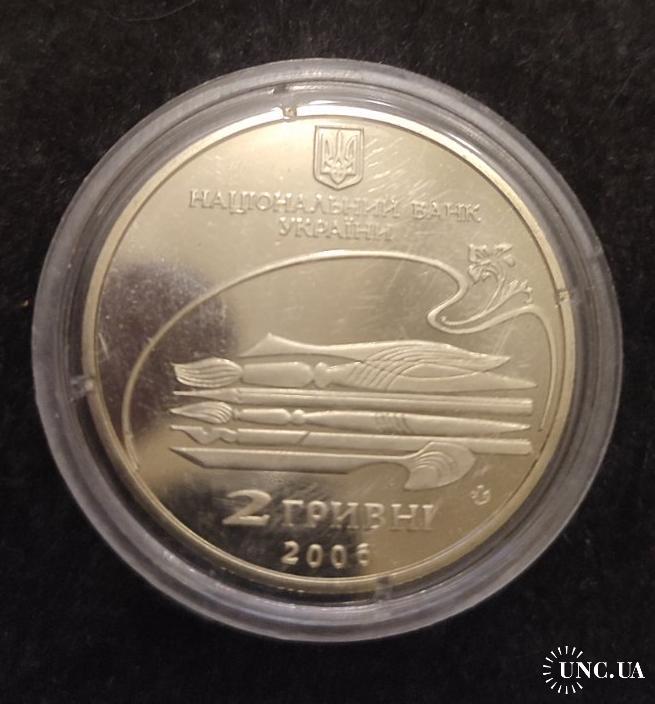 На аверсе монеты вверху размещен малый Государственный Герб Украины, под которым надпись - НАЦІОНАЛЬНИЙ БАНК/ УКРАЇНИ, изображены инструменты скульптора, живописца, графика на фоне стилизованной палитры. Внизу указаны надписи: ДВІ ГРИВНІ/ 2006 и логотип Монетного двора Национального банка Украины.
