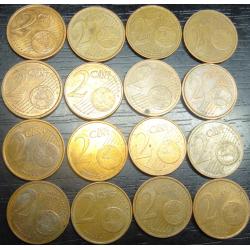 Set of 2 eurocent (different countries), 16 pieces / Комплект 2 євроцента різних країн Євросоюзу, 16шт, всі різні