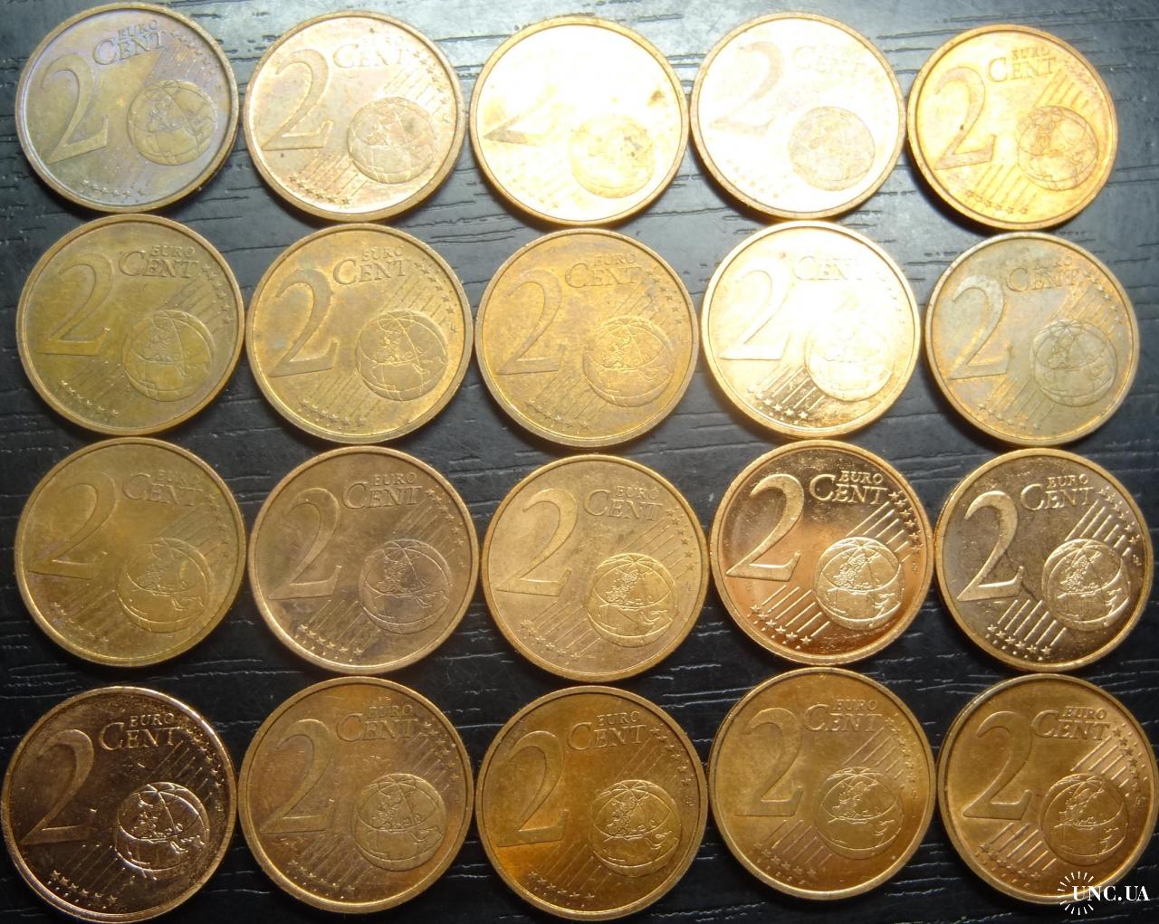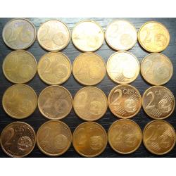 set of 2 eurocent Spain (all different by date) 20 pieces / порічниця 2 євроцента Іспанія, 20шт, всі різні