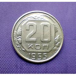 Оригінал20 копійок 1955 року. Стан монети по світлинах, макроз'йомка.