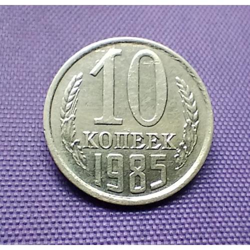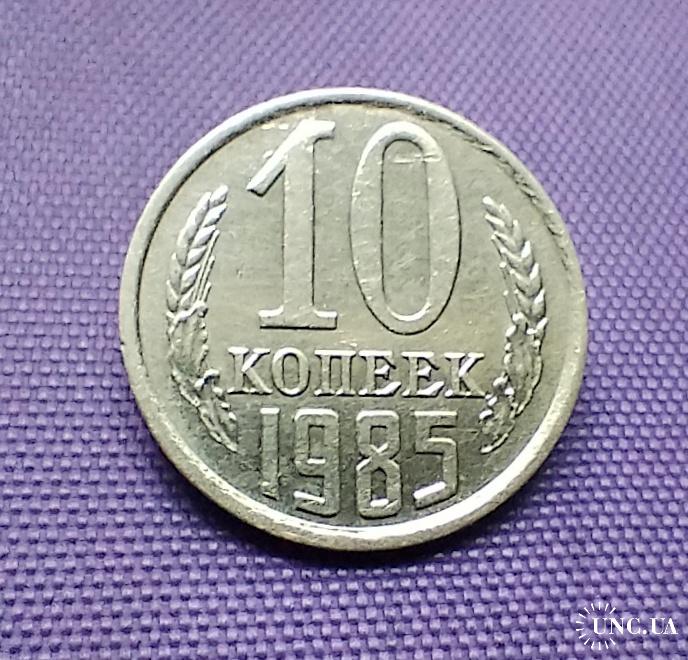 Оригінал10 копійок 1985 року, заводський брак, зіткнення штемпелів. Стан монети по світлинах, макроз'йомка.