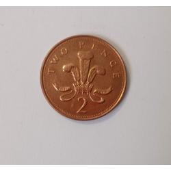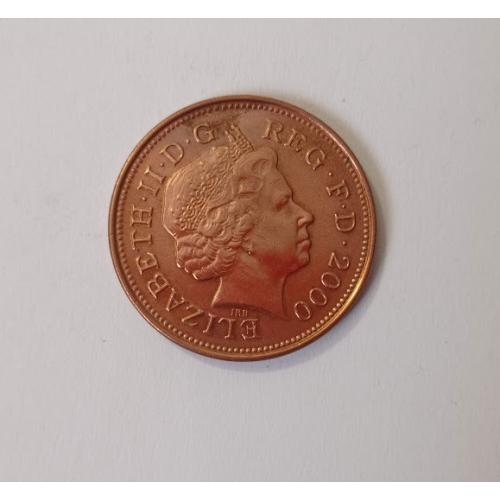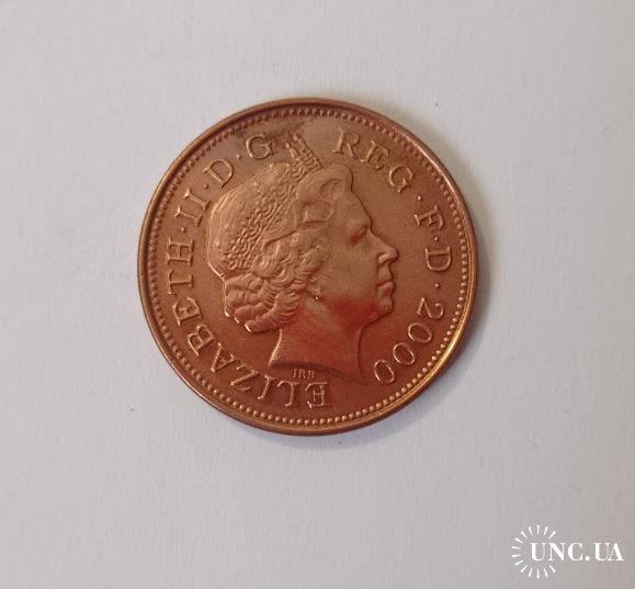 ОригіналОбігова монета із сталі з мідним покриттям 2 пенса 2000 року. Стан по фото.