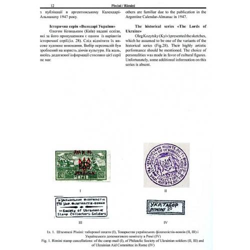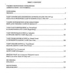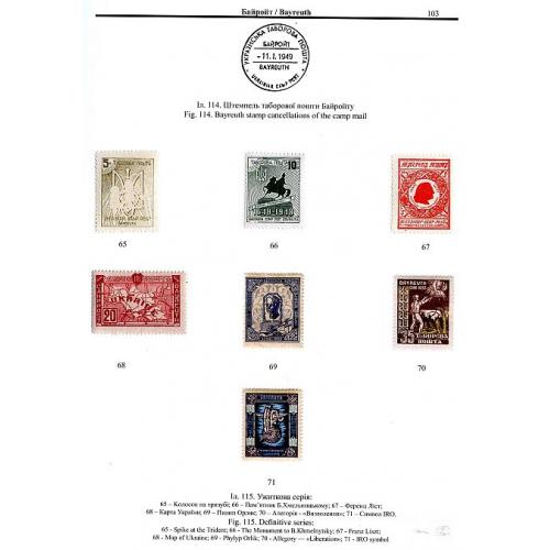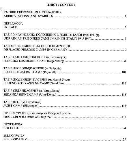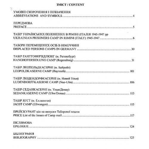 У важких умовах перебування у таборах було налагоджено просвітницьку та культурну діяльність, а також функціонування поштової служби та філателістичних гуртків. У книжці подано понад 130 репродукцій філателістичної продукції та штемпелів, опис сюжетів марок та орієнтовний прейскурант цін на них.
