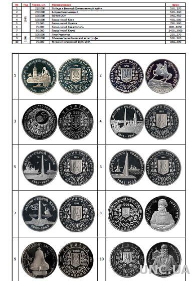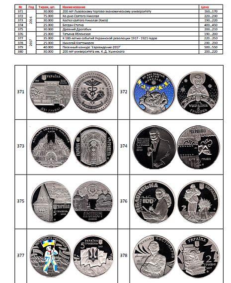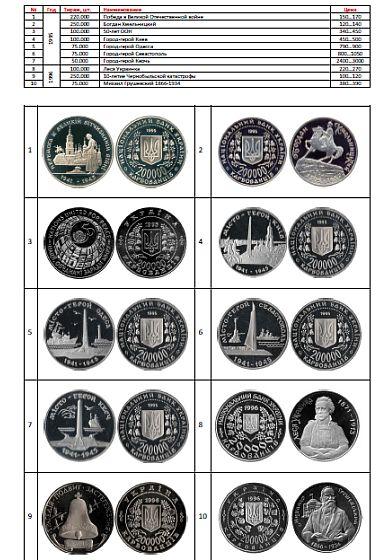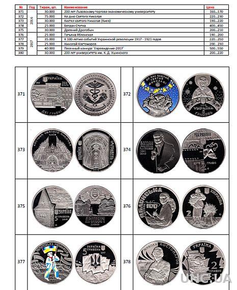 Справочник включает в себя описания более трёхсот восьмидесяти изображений юбилейных монет из биметаллических монет номиналом пять гривен и недрагоценных металлов, в том числе из медно-никелевого сплава (мельхиор) номиналом 200.000 карбованцев и нейзильбера номиналом 2 и 5 гривен.