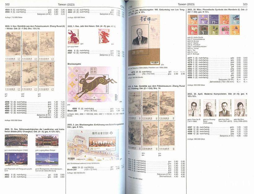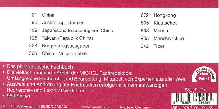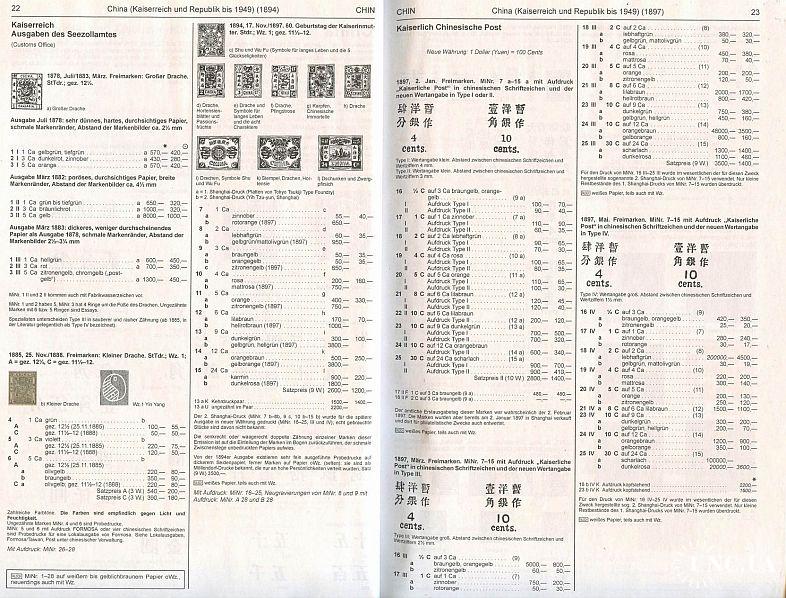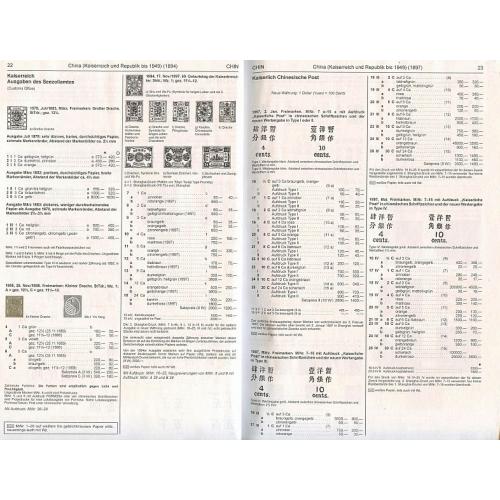 В каталоге широко представлены разные периоды истории Китая, а также прилегающие государства: Гонконг, Зарубежная почта в Китае, Китай (Империя и республика), КНР, Макао, Маньчжоу (Mandschukuo), Тайвань, Тибет, Цзяо-Чжоу (Kiautschou) и японская оккупация Китая.