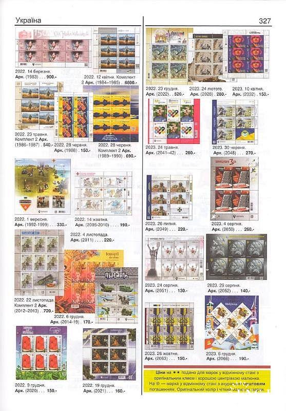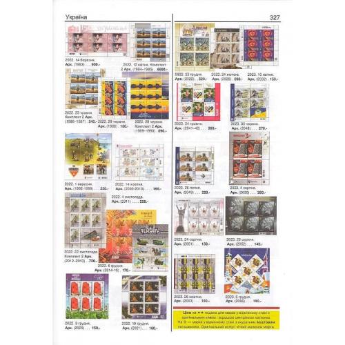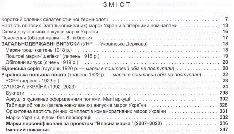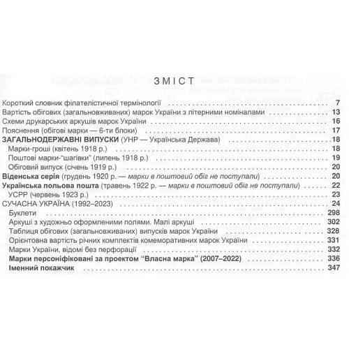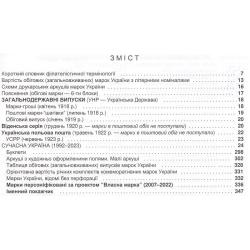 В цьому виданні каталогу міститься опис усіх державних поштових марок України, що випускалися в обіг впродовж 1918-2023 рр. у маркованих аркушах та блоках.