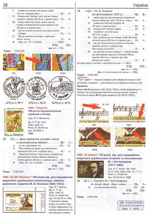 Крім основних номерів описані найбільш відомі різновидності поштових марок.