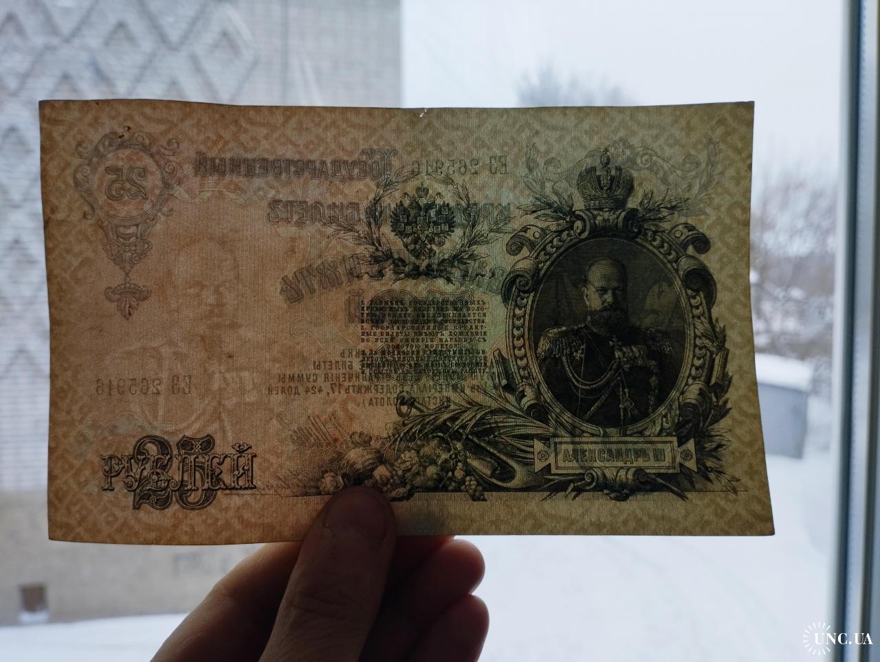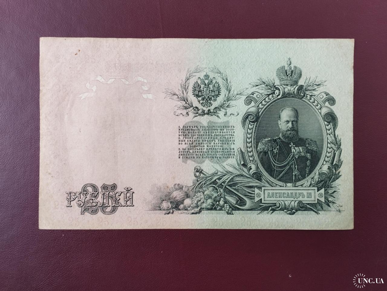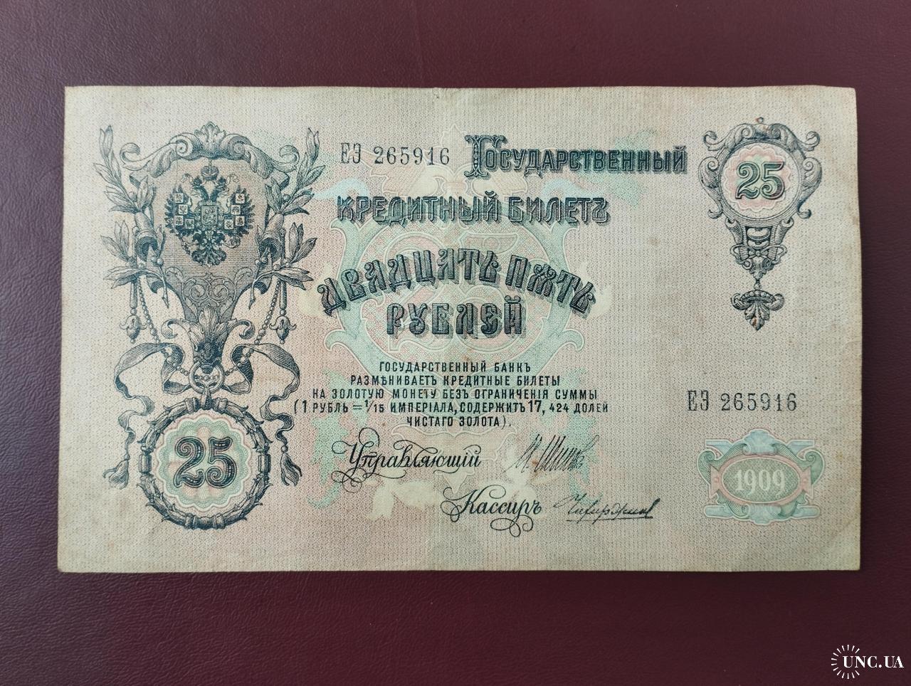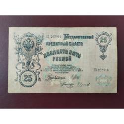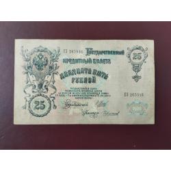 наявний25 рублей 1909 года, Шипов-Чихиржин, Серия ЕЗ (Правительство РСФСР 1917-1918 г.), состояние VF