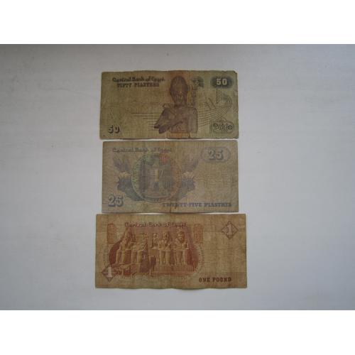 3 банкноти 25-50 піастрів 1 фунт Єгипет одним лотом