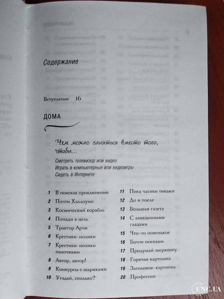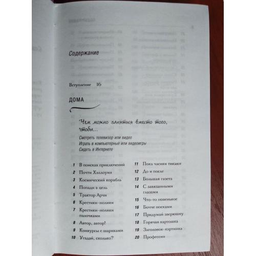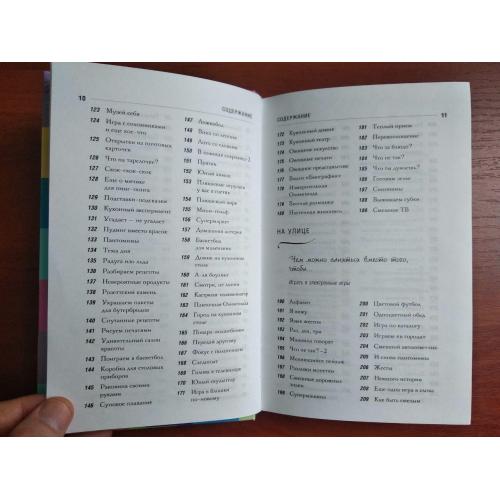 Книга содержит 365 игр — по одной на каждый день года — для детей разного возраста и на любую ситуацию. В эти игры можно играть дома, на улице, в машине и общественном транспорте, в очереди в поликлинике или парикмахерской и даже во время путешествия. Игры развивают внимание, память, логическое мышление, творческие способности, учат работать в команде и общаться. Авторы предлагают словесные игры, подвижные занятия, творческие задания, головоломки — всё, что поможет превратить обычный день в увлекательное приключение. Книга решает главную проблему современных родителей — как занять ребенка без гаджетов, весело и с пользой.