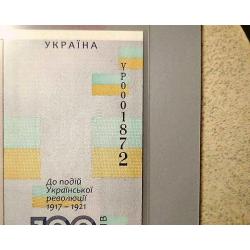 (4) Сувенірна банкнота Сто гривень в сувеніркі до 100-річчям Української революції