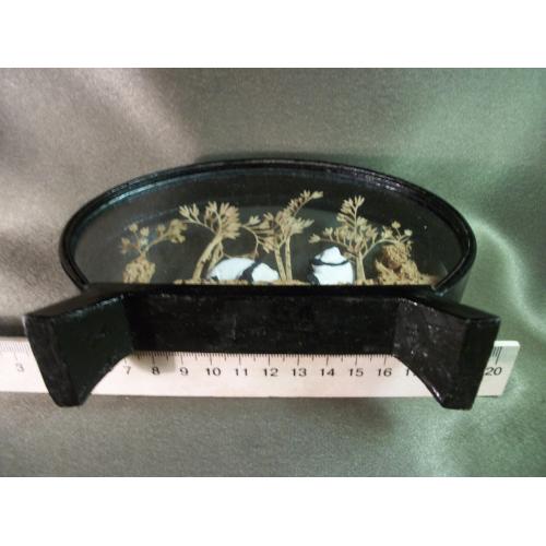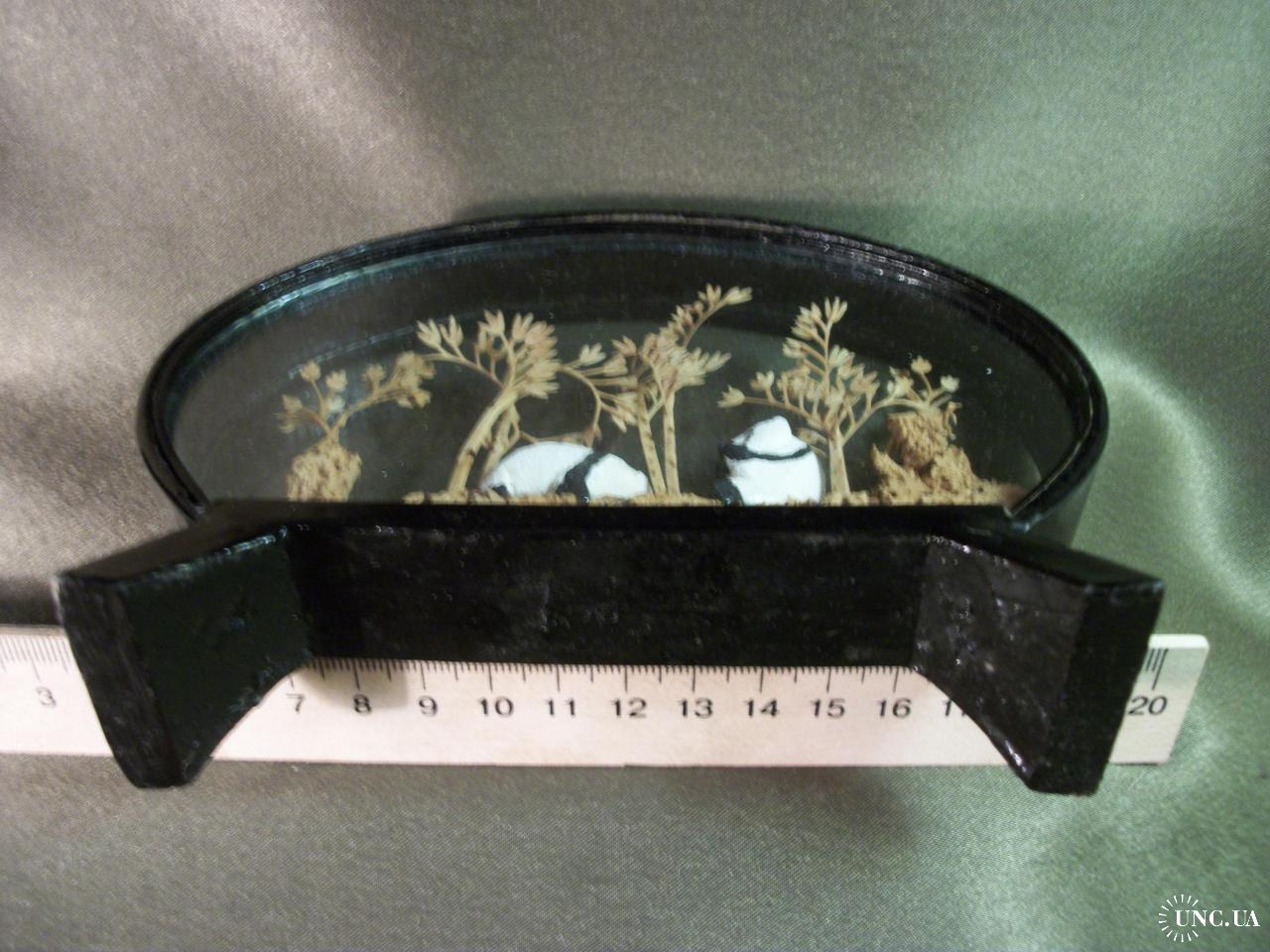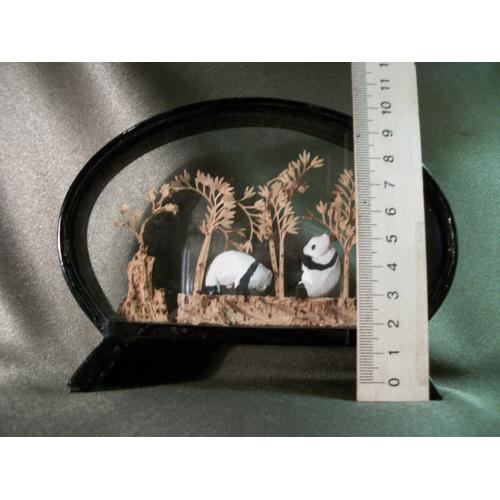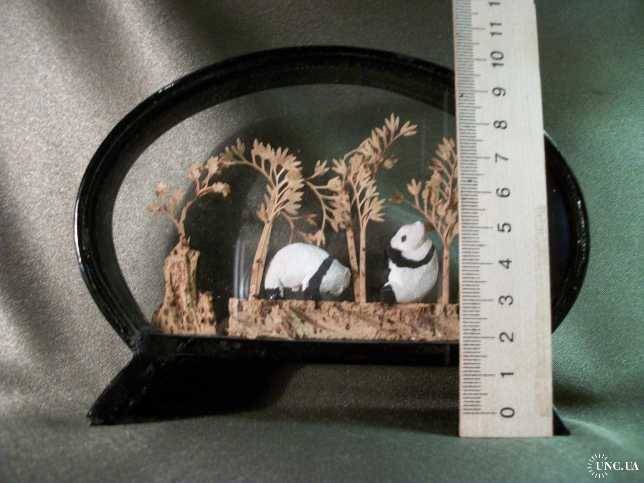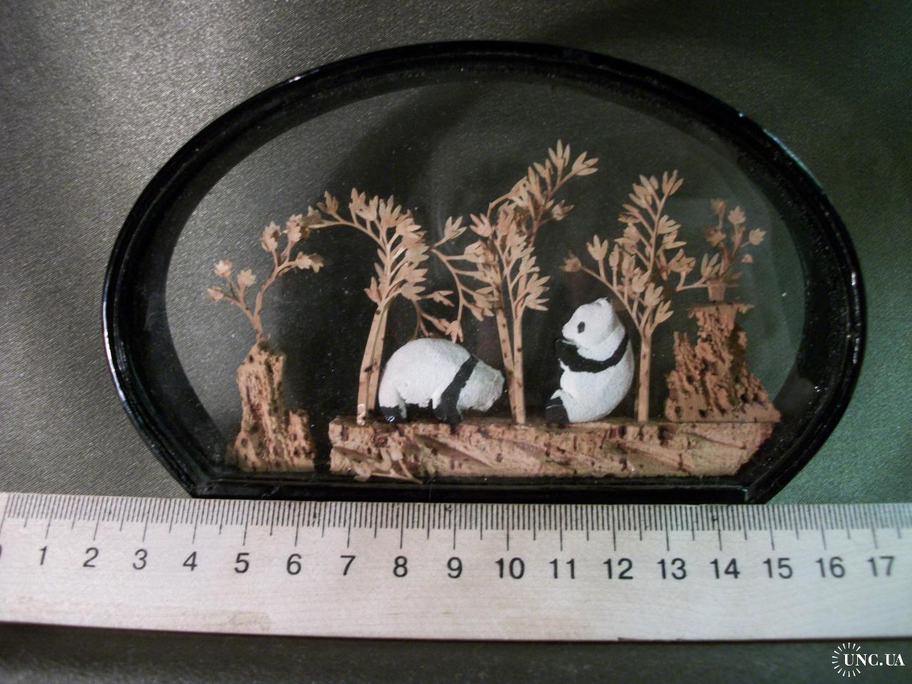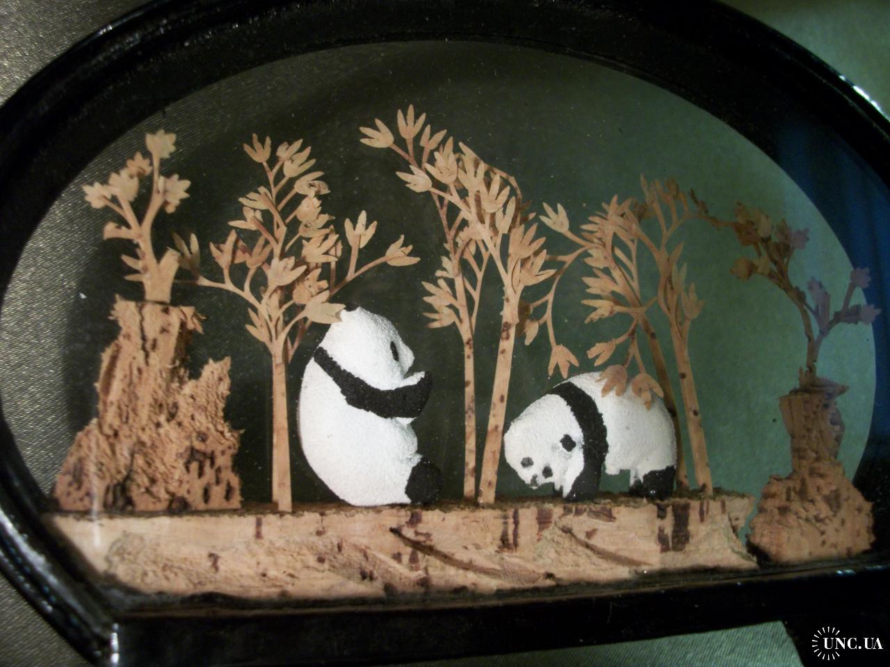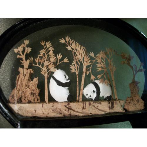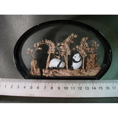1981-20005.110 Панно. Панды среди бамбука, Китай времен СССР. Пробка, дерево, стекло. Высота 11 см