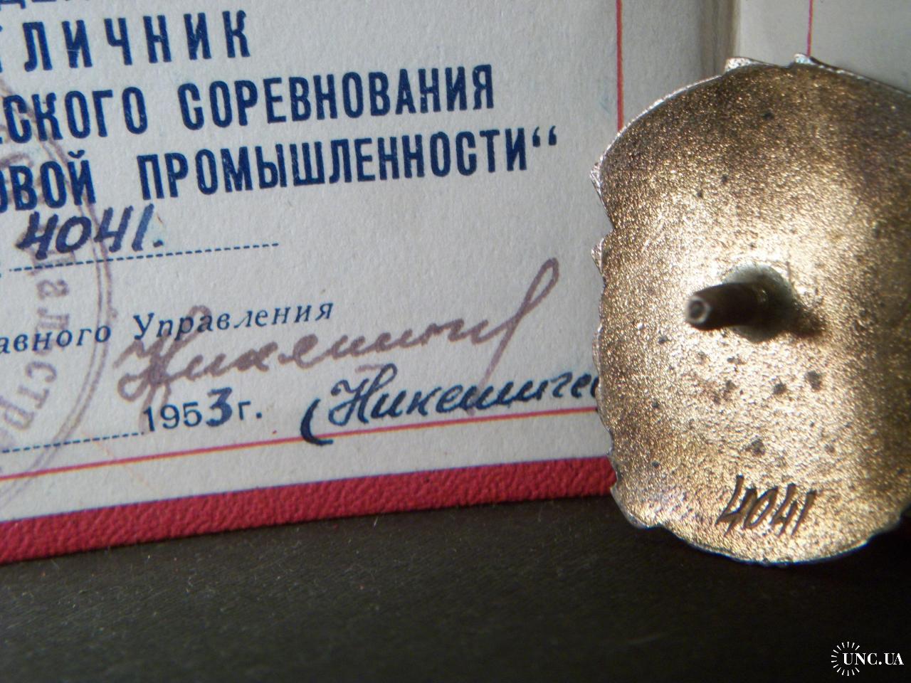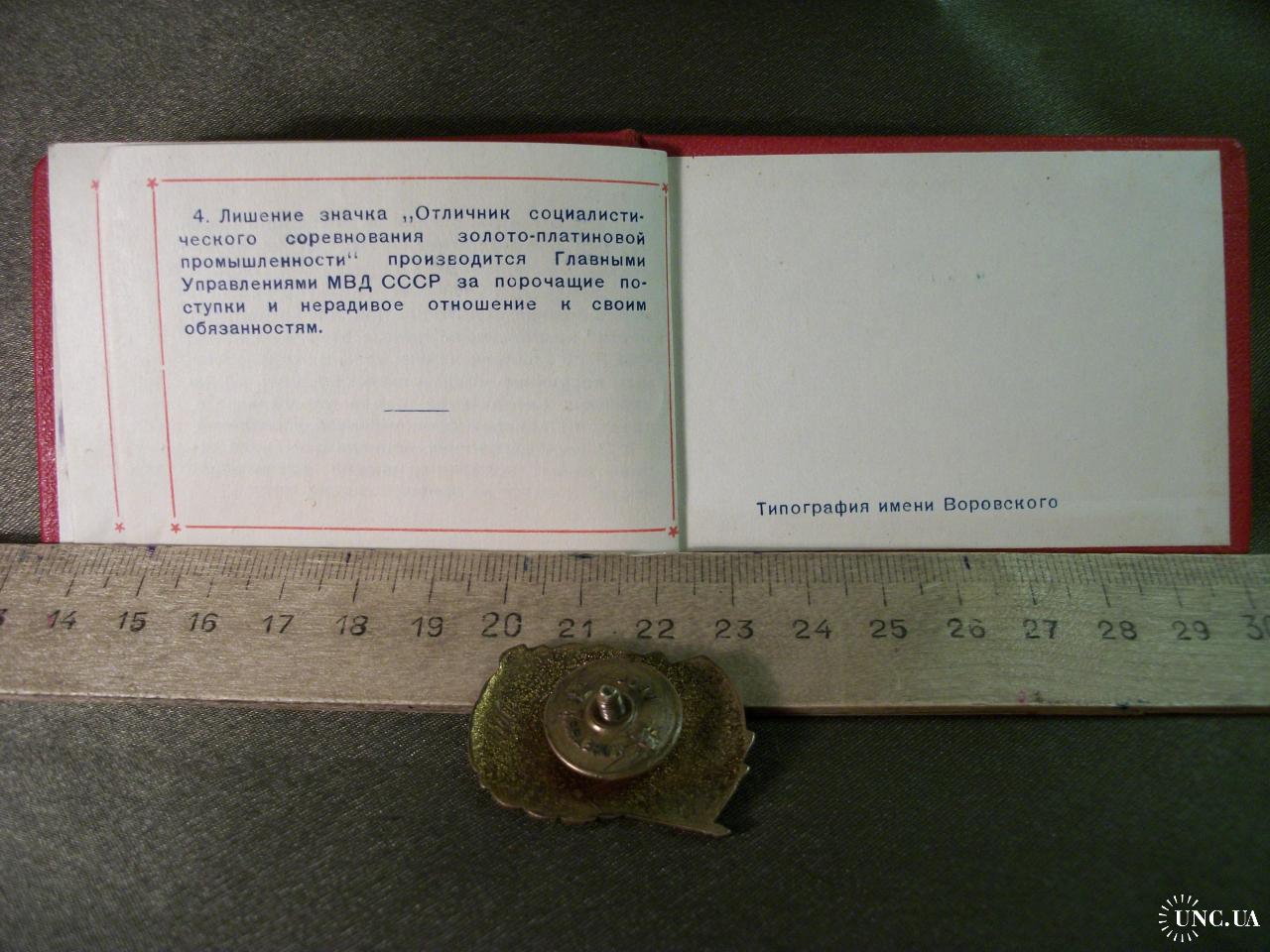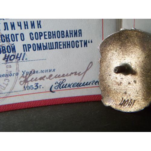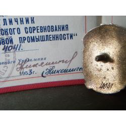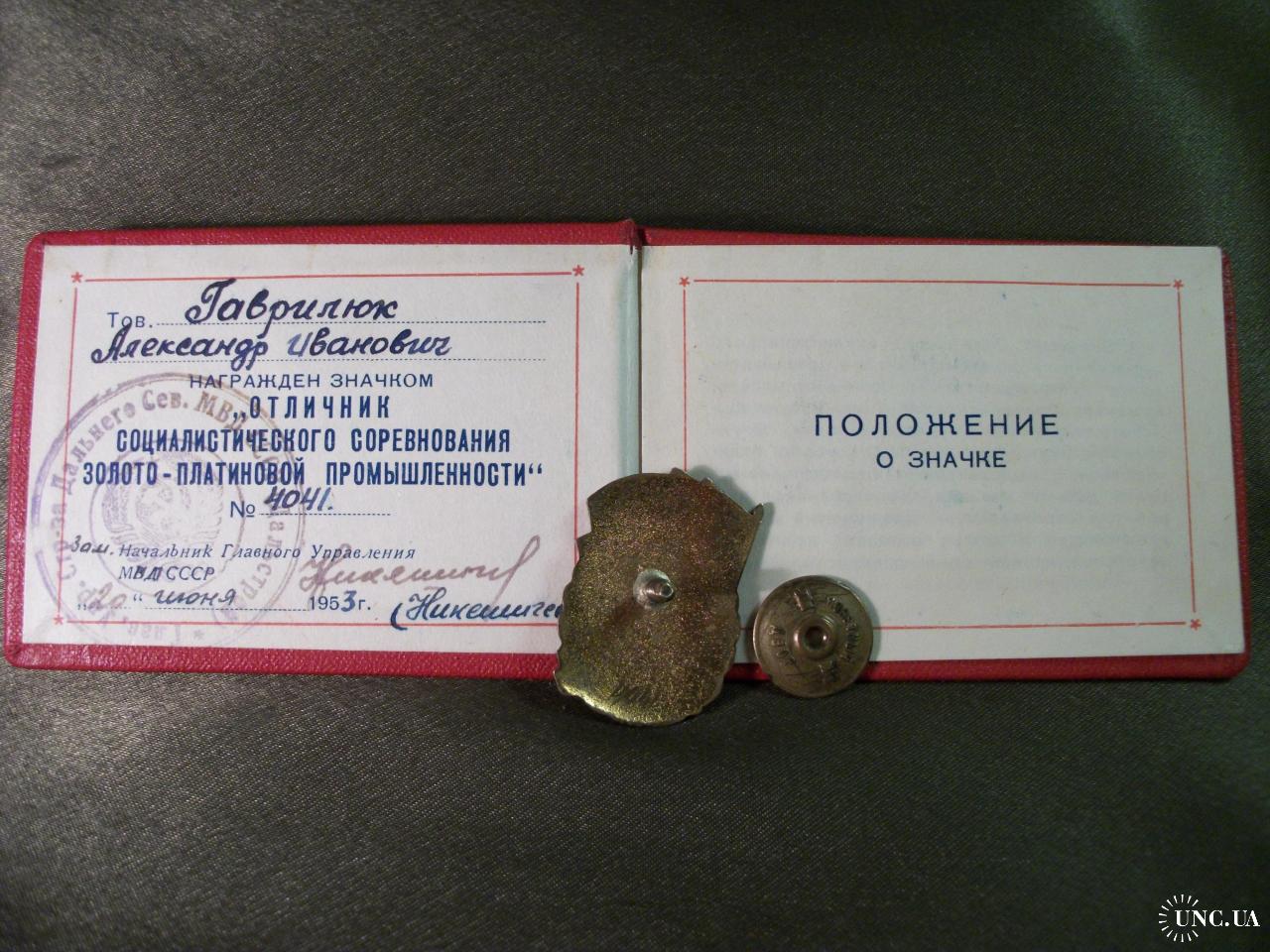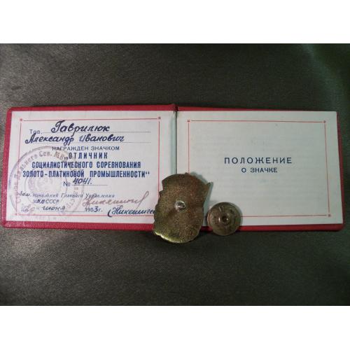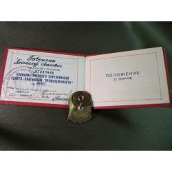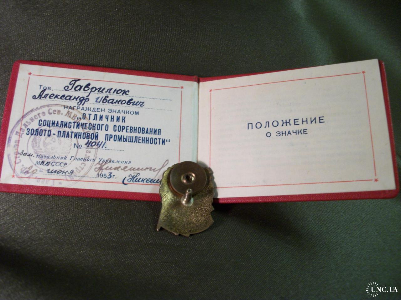 1941-19605.253 Отличник Золотоплатиновой промышленности СССР с удостоверением 1953 год
