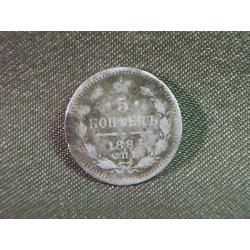 Оригінал5.268 5 копеек 1884 год СПБ АГ Александр 3