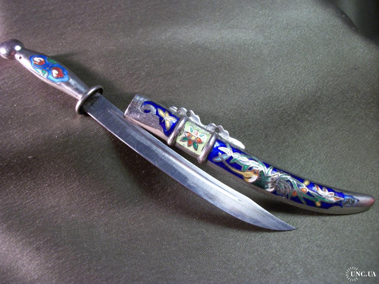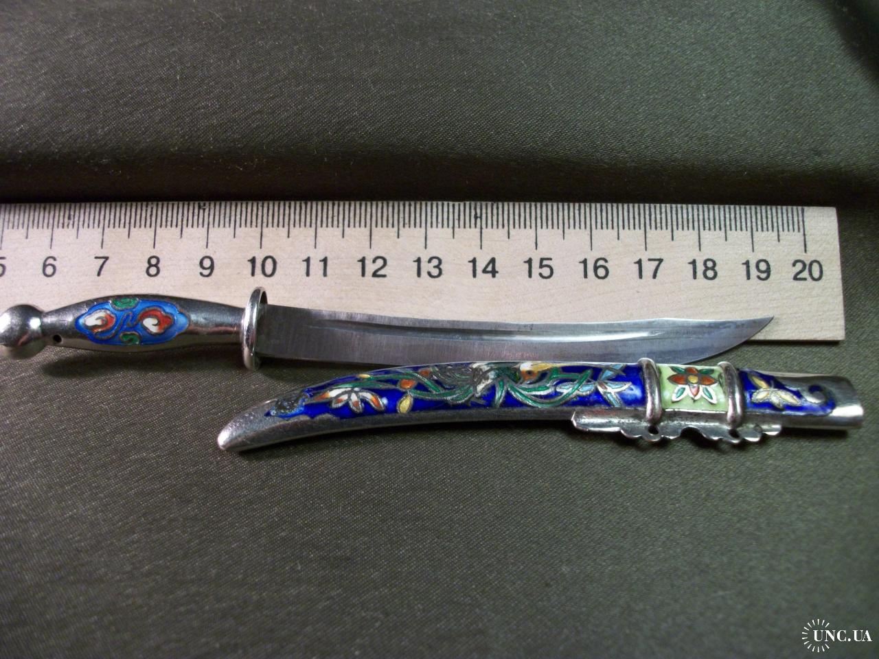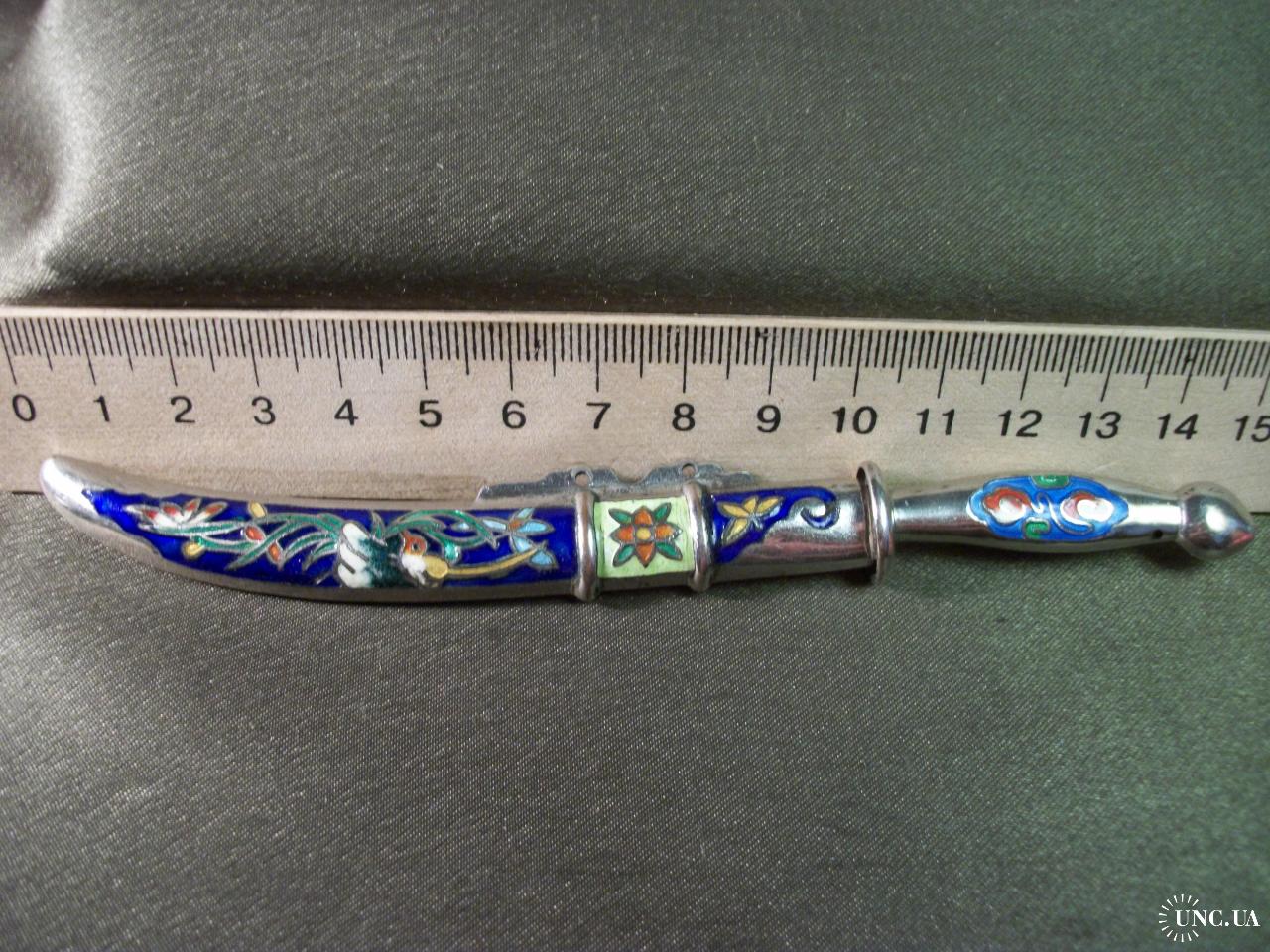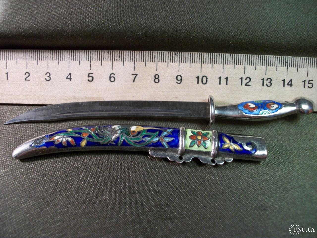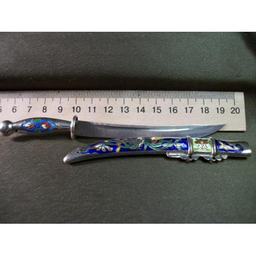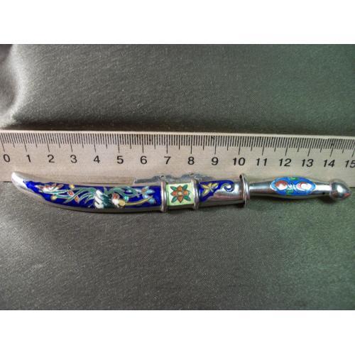 1981-20005.717 Нож для писем, бумаг, конвертов. Эмаль, клуазоне. Ножны из не магнитного металла, лезвие из железа.